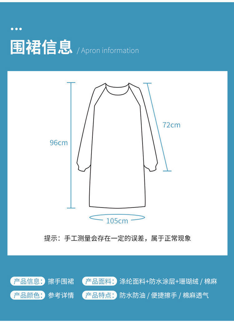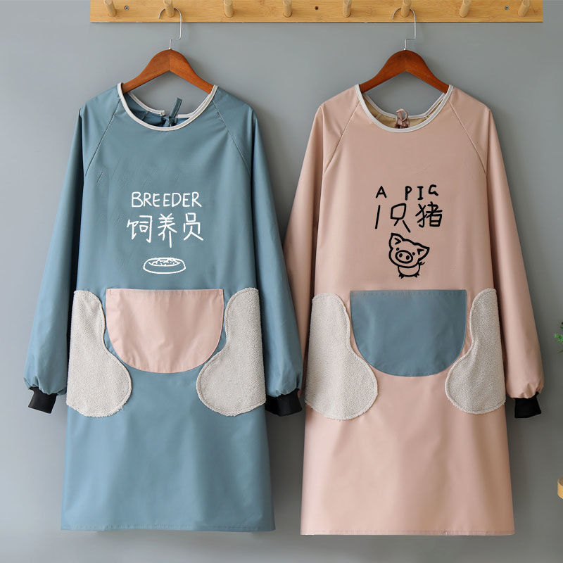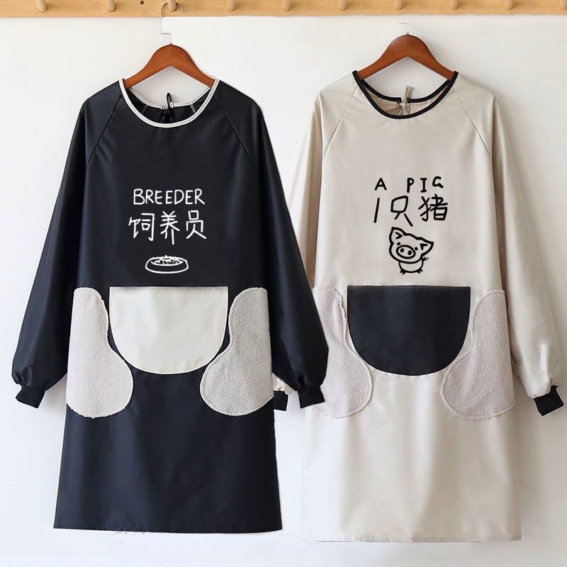 주방 작업 바지 가정용 방수 및 내유성 인터넷 인기 긴팔 앞치마 여성 유행 한국식 성인 독립 역스토어 가기