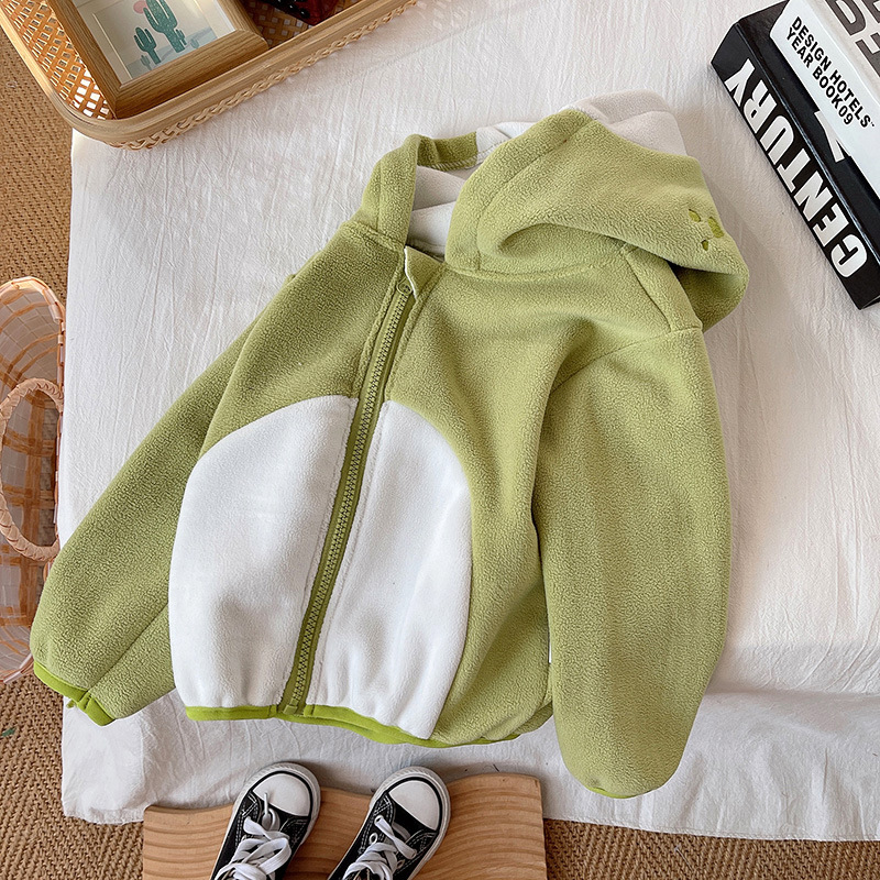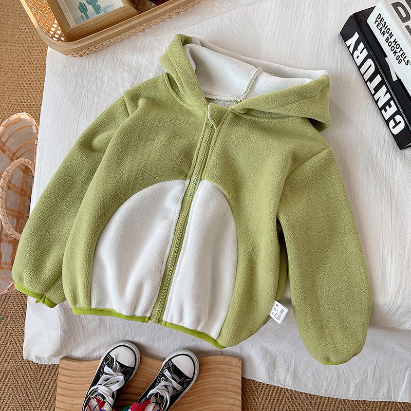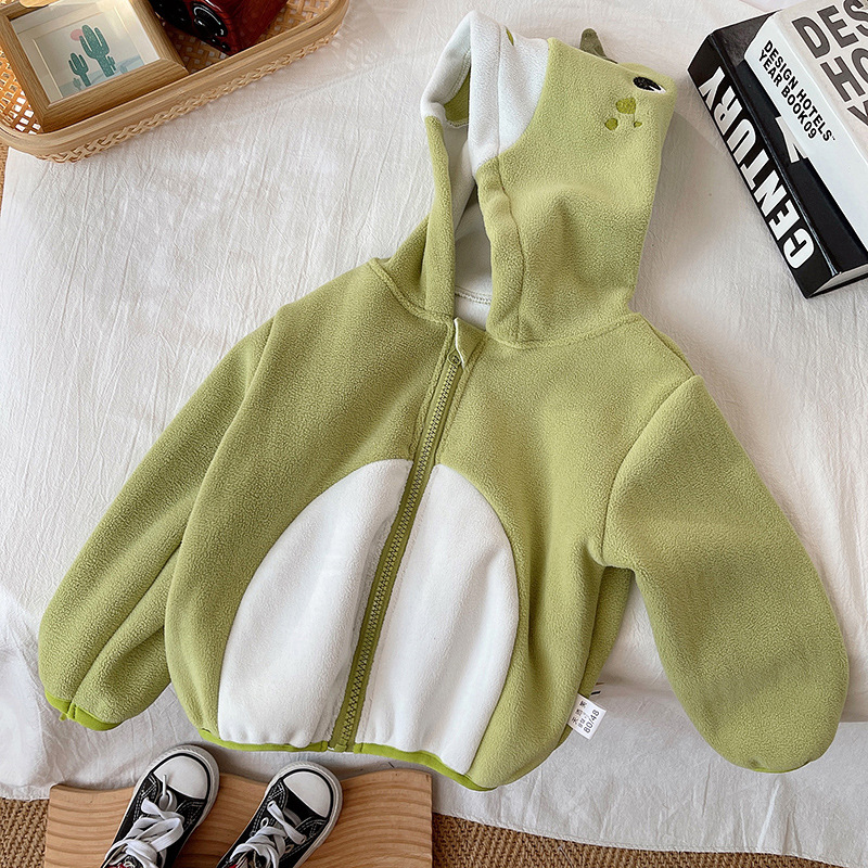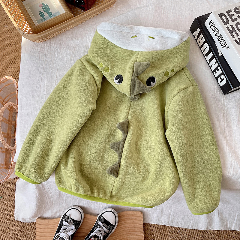 새로운 어린이 아기 벨벳 재킷 남자와 여자의 따뜻한 탑 기모 카디건 지퍼 공룡 스타일 귀여운 유행 재킷