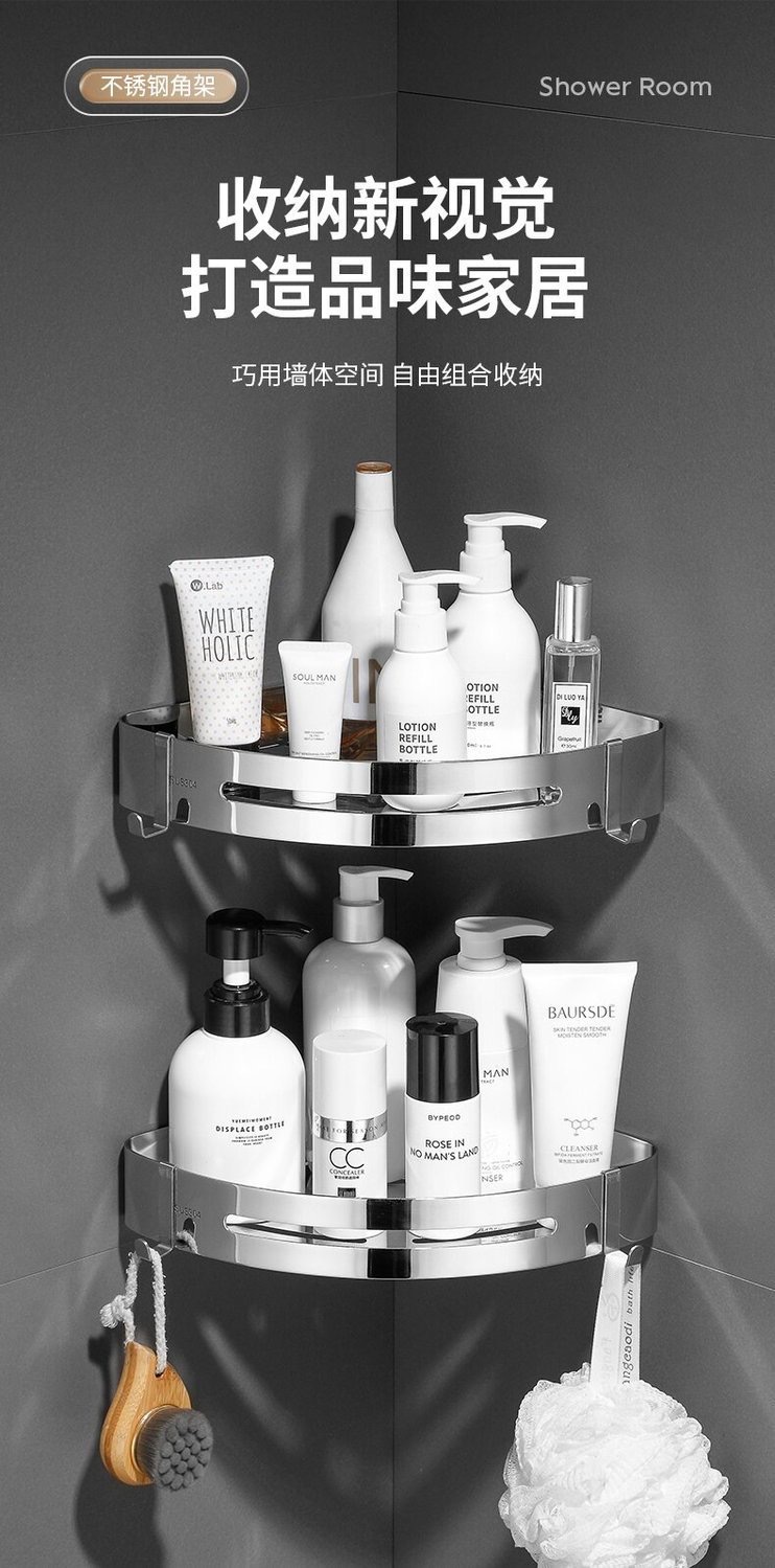304 스테인레스 스틸 삼각대 화장실 랙 천공되지 않은 욕실 삼각대 화장실 코너 랙 코너 바구니스토어 가기