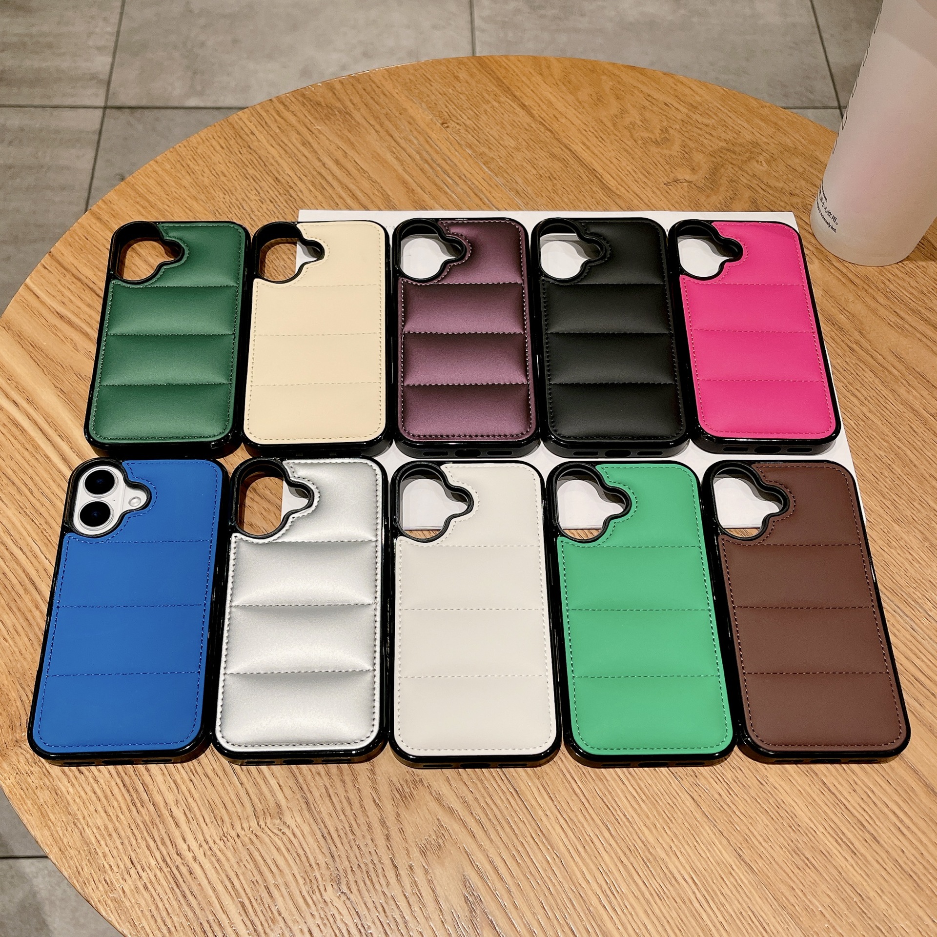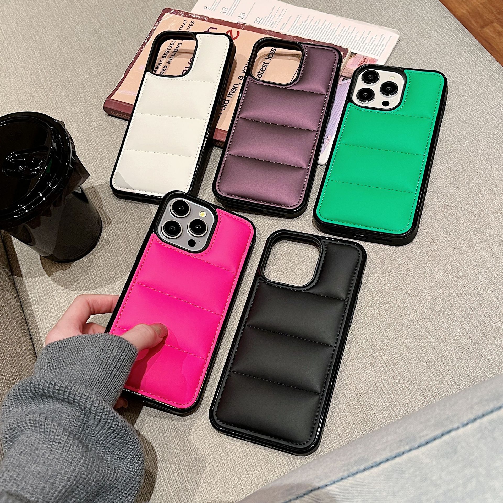 단색 솜털 가죽 다운 재킷 iPhone16Promax 휴대폰 케이스 애플15 해외 무역 17 커플 13