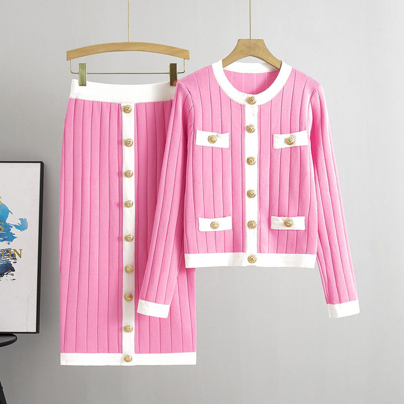 여성 가을 겨울을 위한 크로스보더 프렌치 스타일 여성용 고급 정장 스커트, 니트 가디건 투피스 드레스스토어 가기