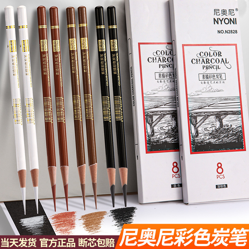Nioni 스케치 컬러 숯 펜 미술 학생을위한 특별 교육 스튜디오 하이 글로우 펜 다크 다크 브라운 펜스토어 가기
