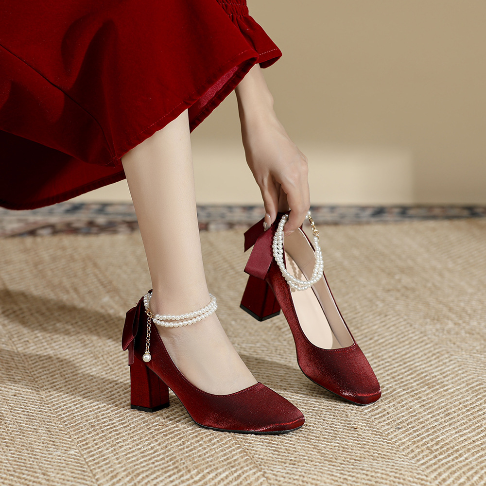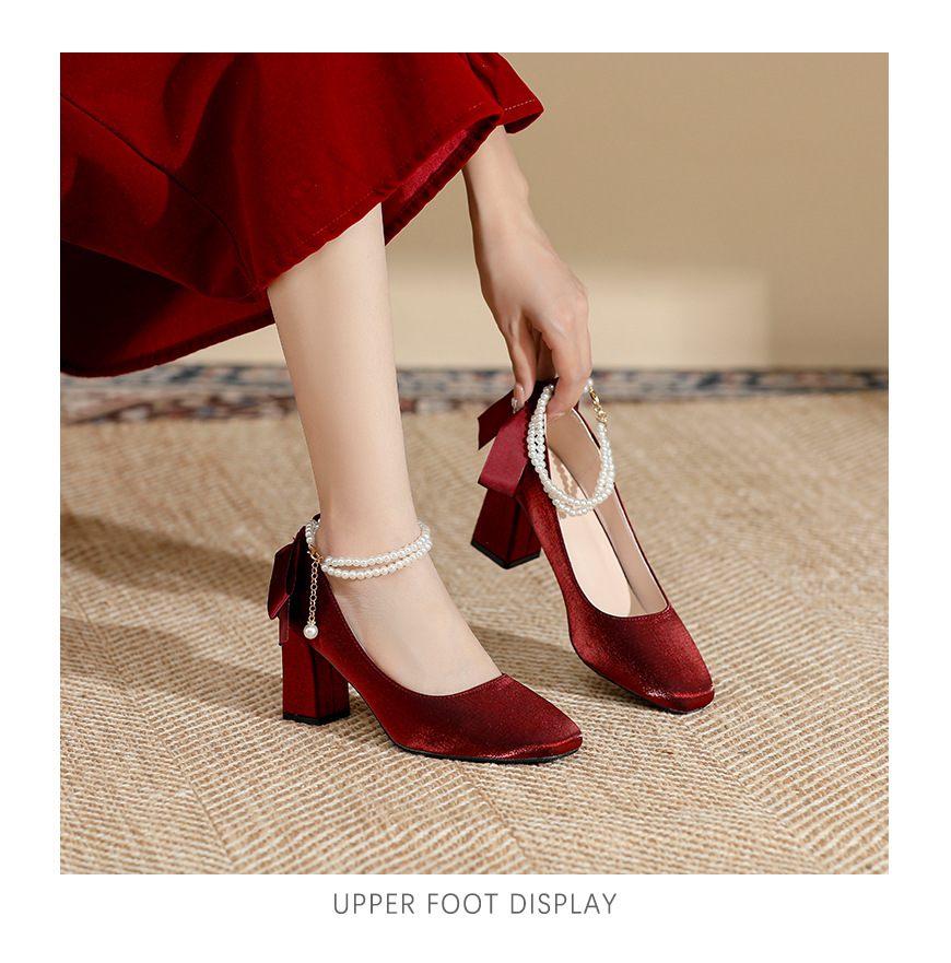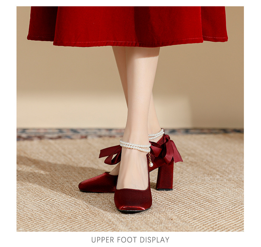 새로운 스퀘어 헤드 청키 힐 하이힐 플러스 사이즈 플러스 지방 확장 웨딩 신발 웨딩 신발 신부 신발 싱글 신발 Xiuhe 원피스 투웨어스토어 가기