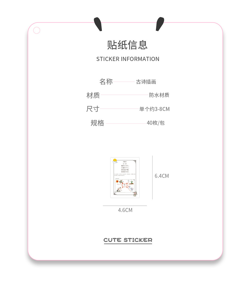 어린이 계몽 조기 교육을위한 원래 40 고대시와 그림 스티커 창조적 인 장식 노트북 문구 손 계정 재료 스티커스토어 가기