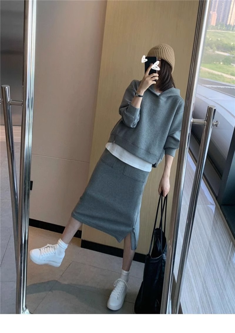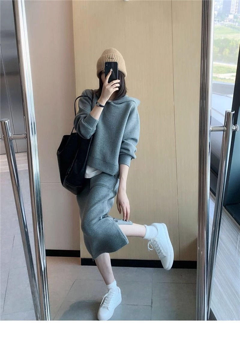 2024 봄과 가을 대형 통통녀 여성용 후드 스웨트 스커트 세트 캐주얼 패션 2 피스 세트 200 진 300스토어 가기