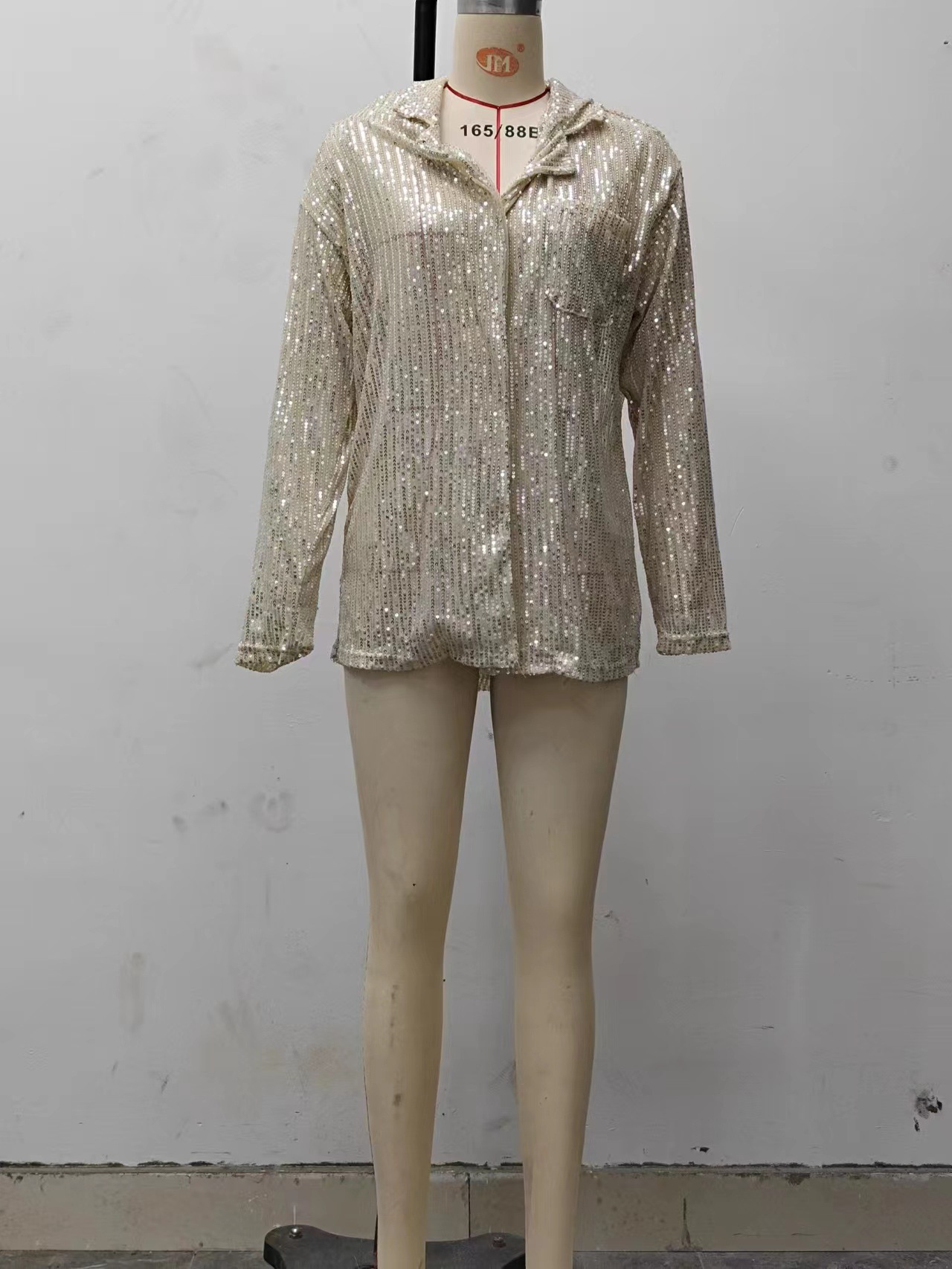 2025년 가을 유럽 및 미국 크로스보더 여성복 아마존 신상 패션 스팽글 긴팔 라펠 캐주얼 셔츠스토어 가기