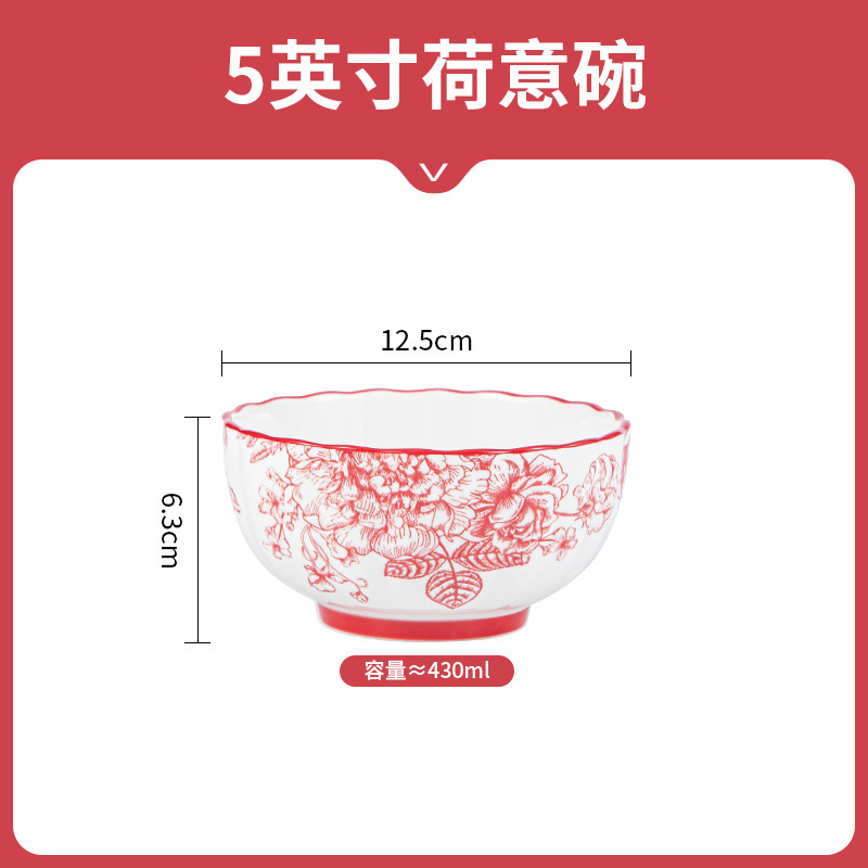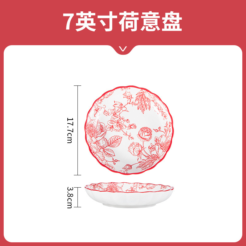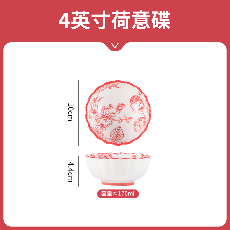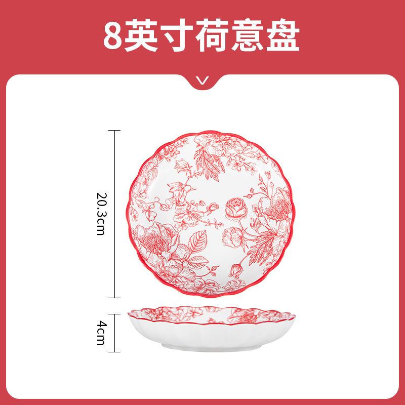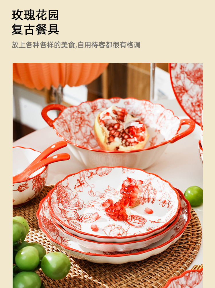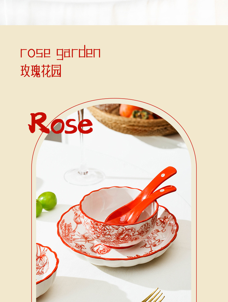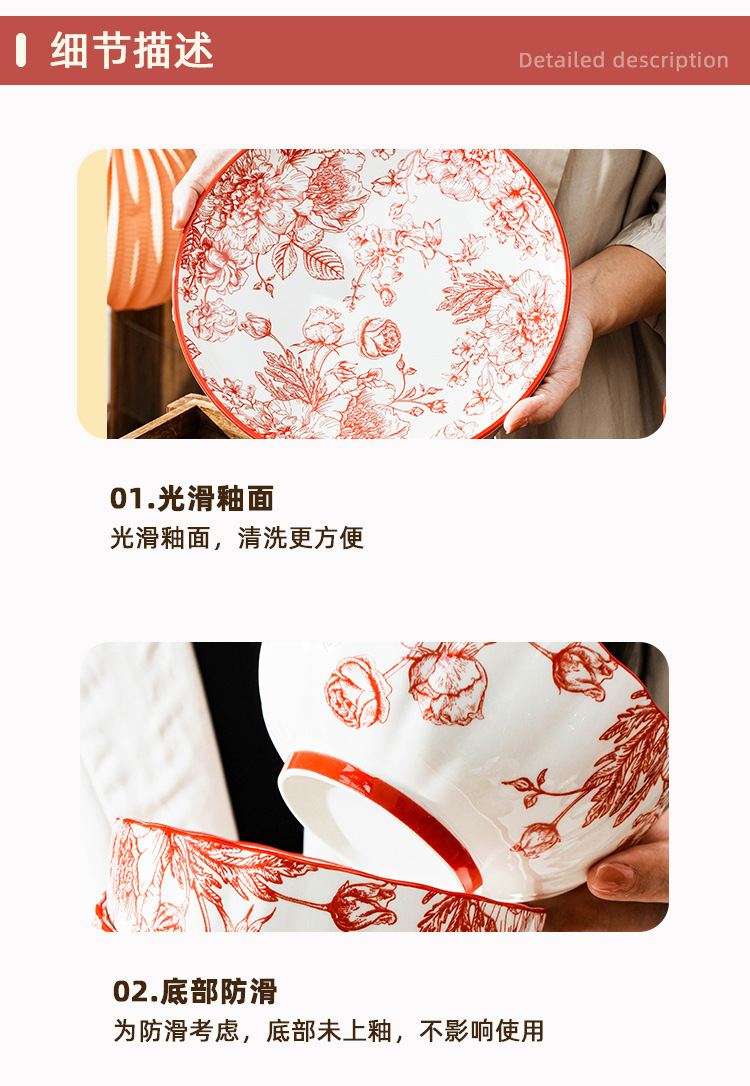 현대 주부 같은 스타일 장미 정원 새로운 중국 가정 축제 결혼식 빨간 식기 밥 그릇 국수 그릇 접시 식사스토어 가기