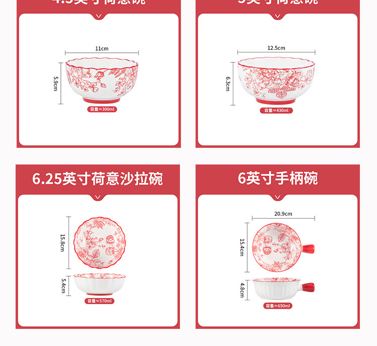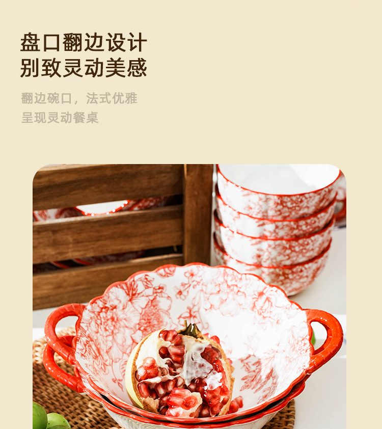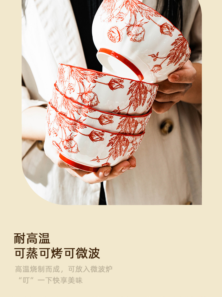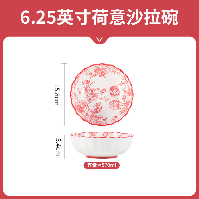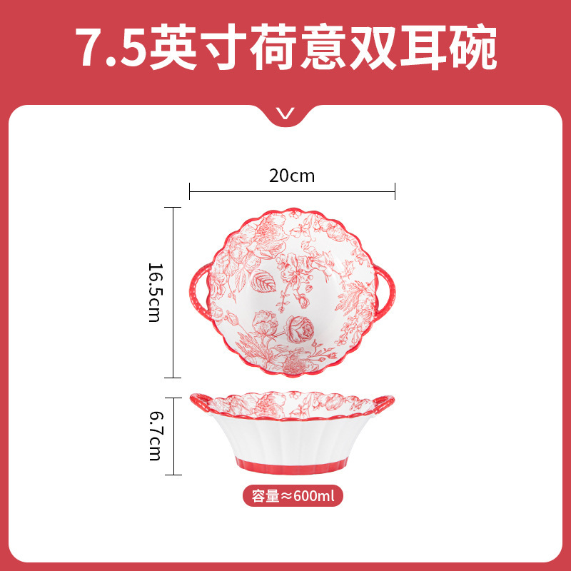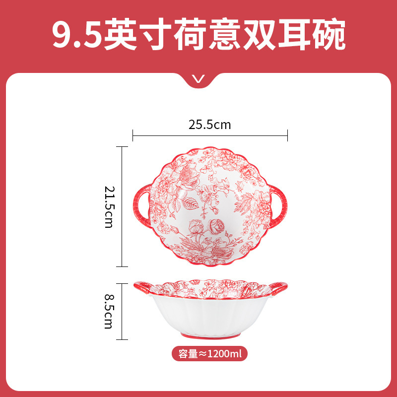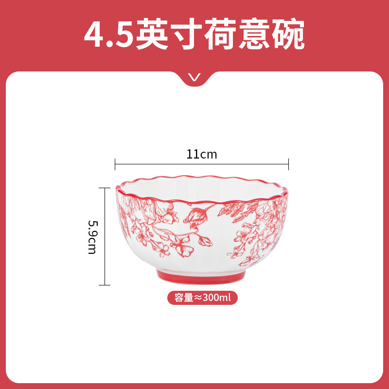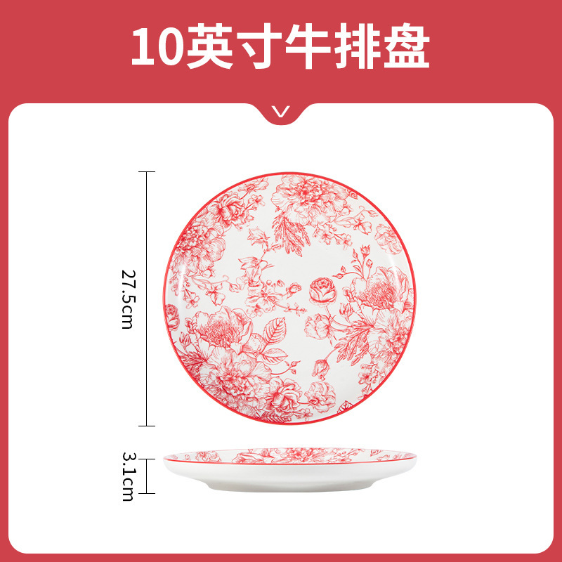 현대 주부 같은 스타일 장미 정원 새로운 중국 가정 축제 결혼식 빨간 식기 밥 그릇 국수 그릇 접시 식사스토어 가기
