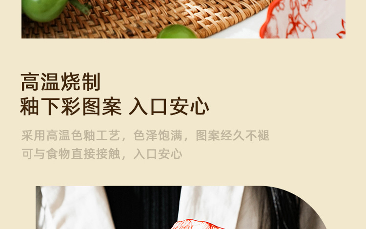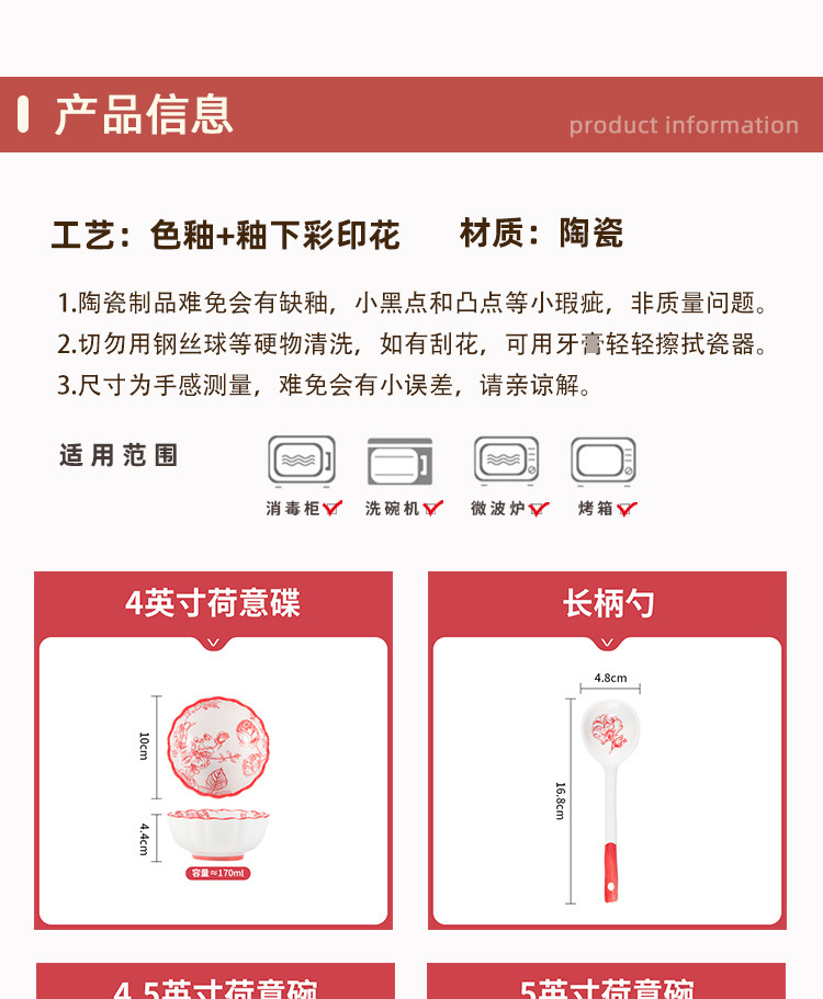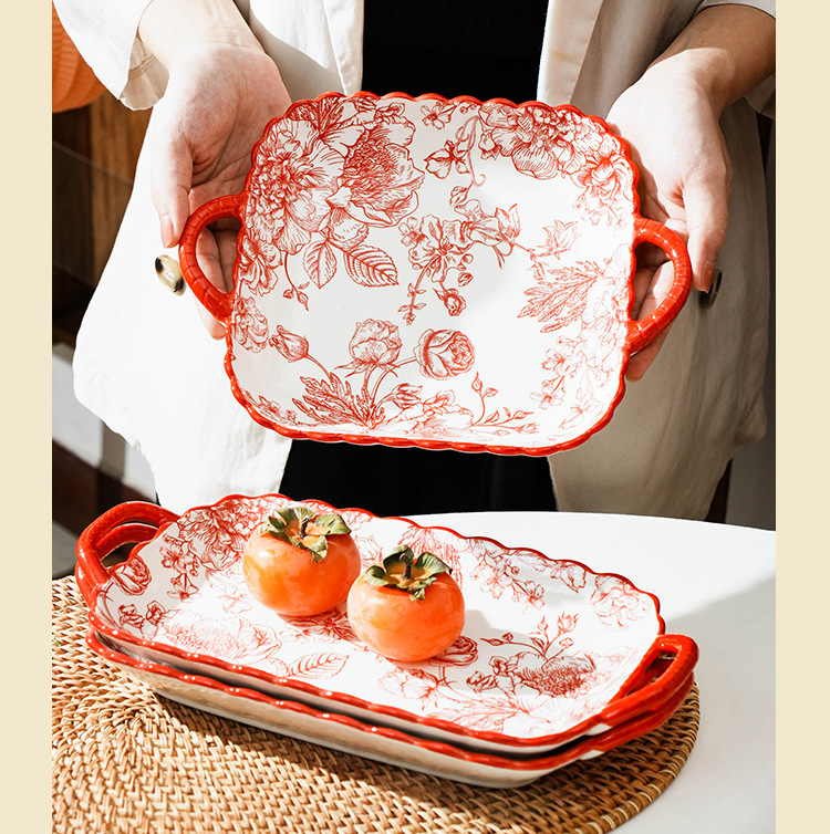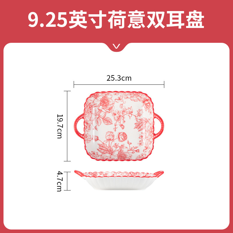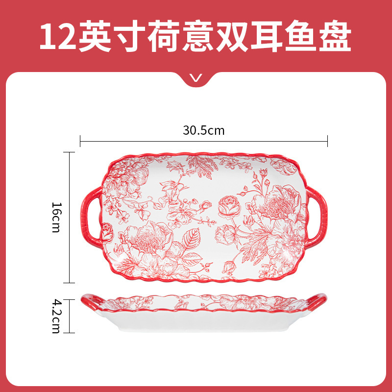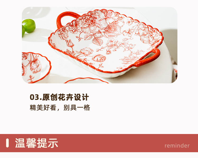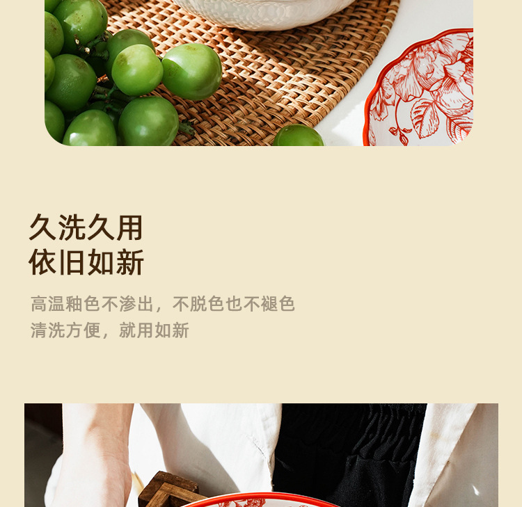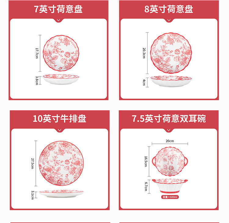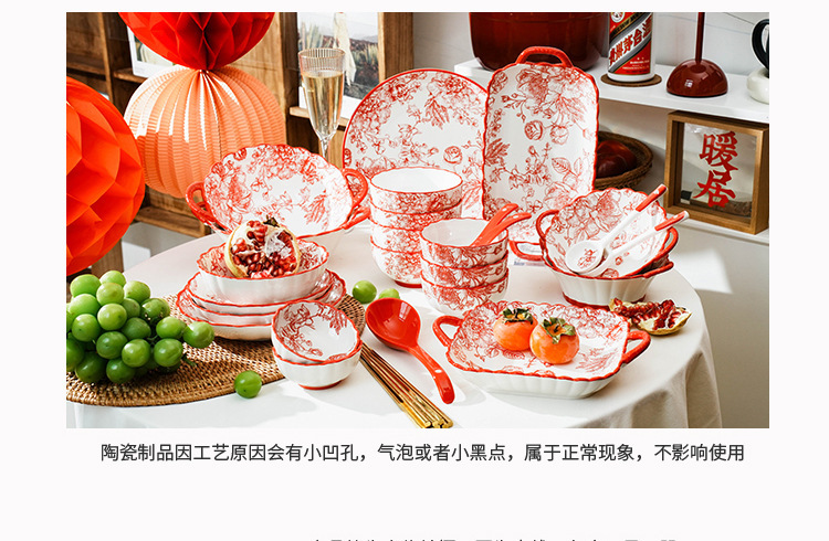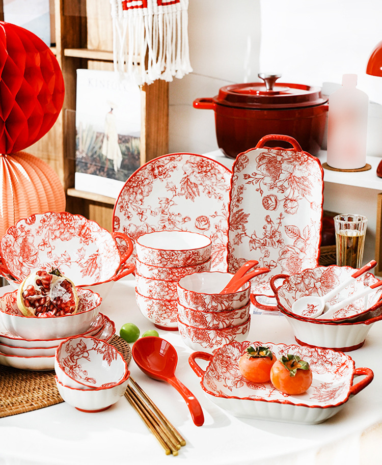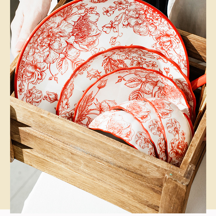현대 주부 같은 스타일 장미 정원 새로운 중국 가정 축제 결혼식 빨간 식기 밥 그릇 국수 그릇 접시 식사