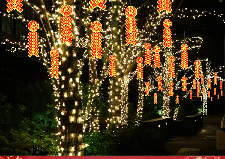 새로운 야외 led 빛나는 새해 봄 축제 폭죽 조명 야외 거리 교수형 나무 장식 조명 엔지니어링 조명 샹들리에스토어 가기