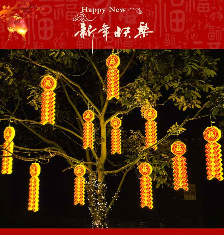 새로운 야외 led 빛나는 새해 봄 축제 폭죽 조명 야외 거리 교수형 나무 장식 조명 엔지니어링 조명 샹들리에