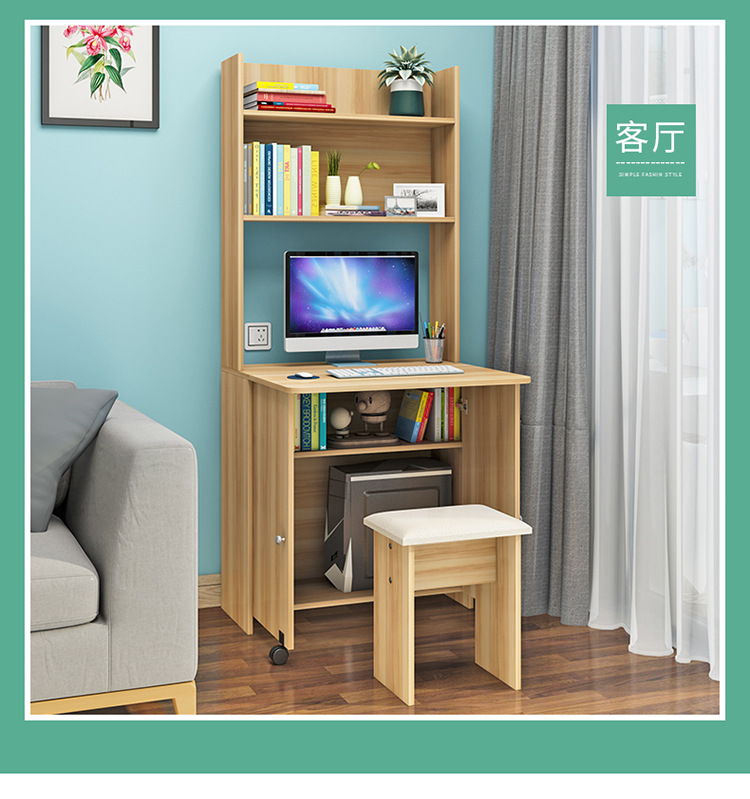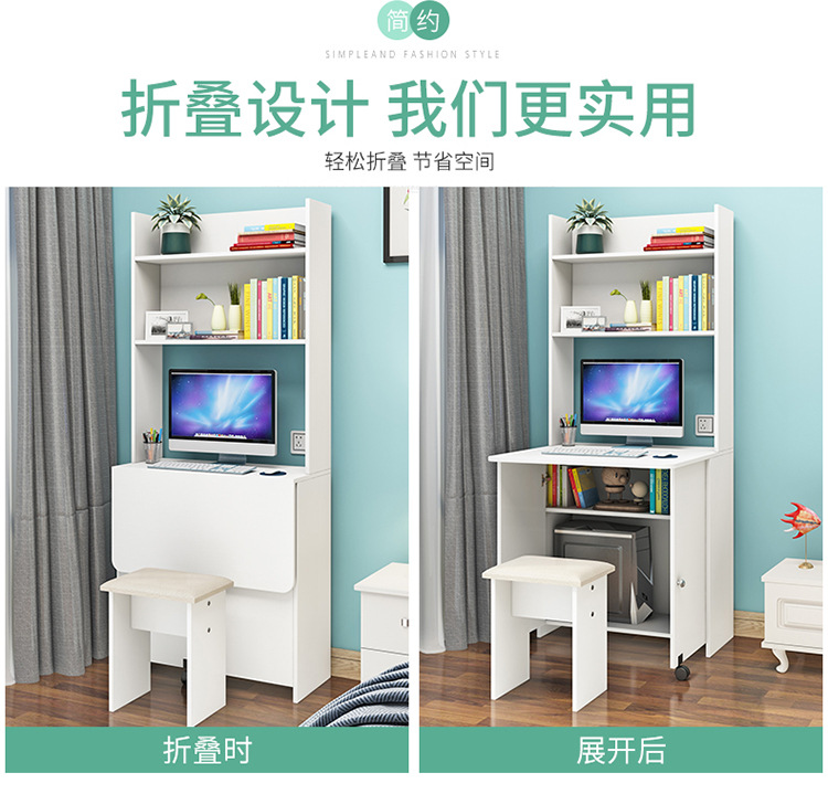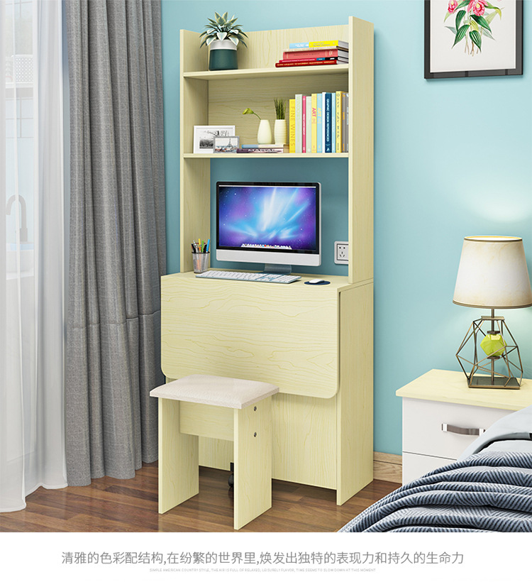 L 작은 아파트 책상 책장 조합 컴퓨터 데스크탑 테이블 홈 학생 쓰기 책상 책장 책상 올인원 접이식스토어 가기