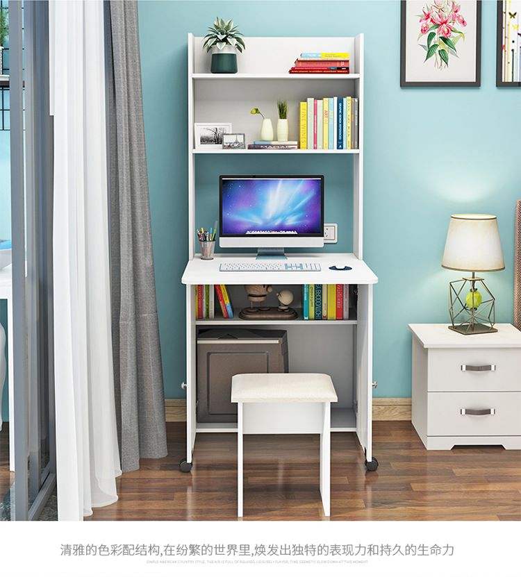 L 작은 아파트 책상 책장 조합 컴퓨터 데스크탑 테이블 홈 학생 쓰기 책상 책장 책상 올인원 접이식