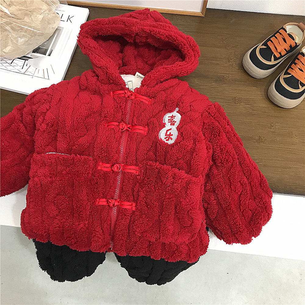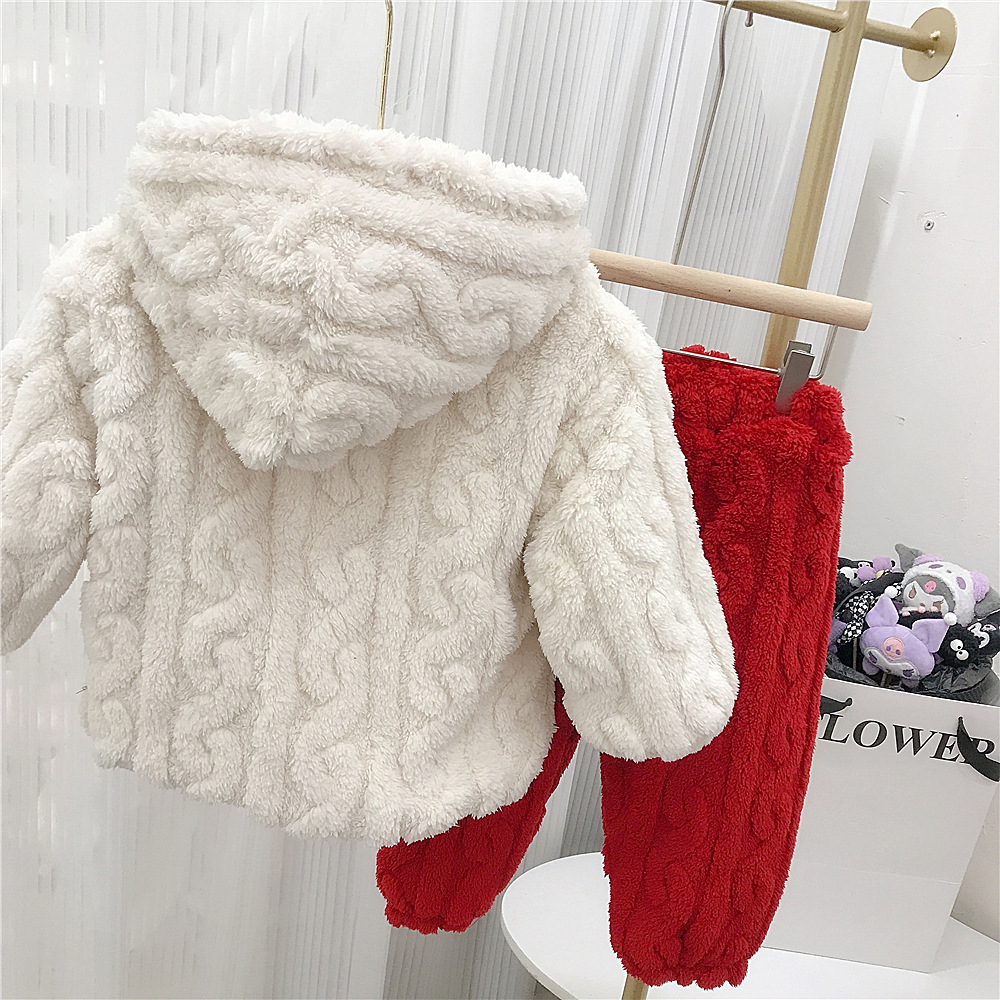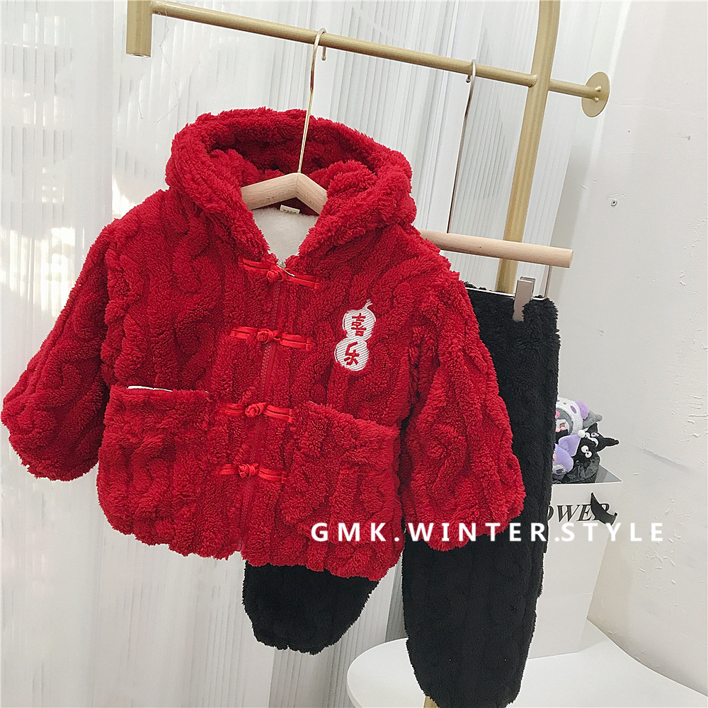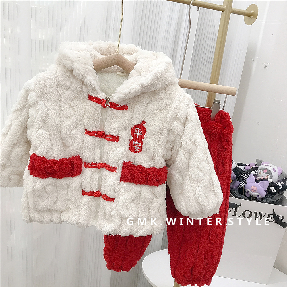 어린이 플란넬 가정 의류 겨울 형제 자매 축제 3 층 두꺼운 새해 평화와 기쁨 잠옷 세트
