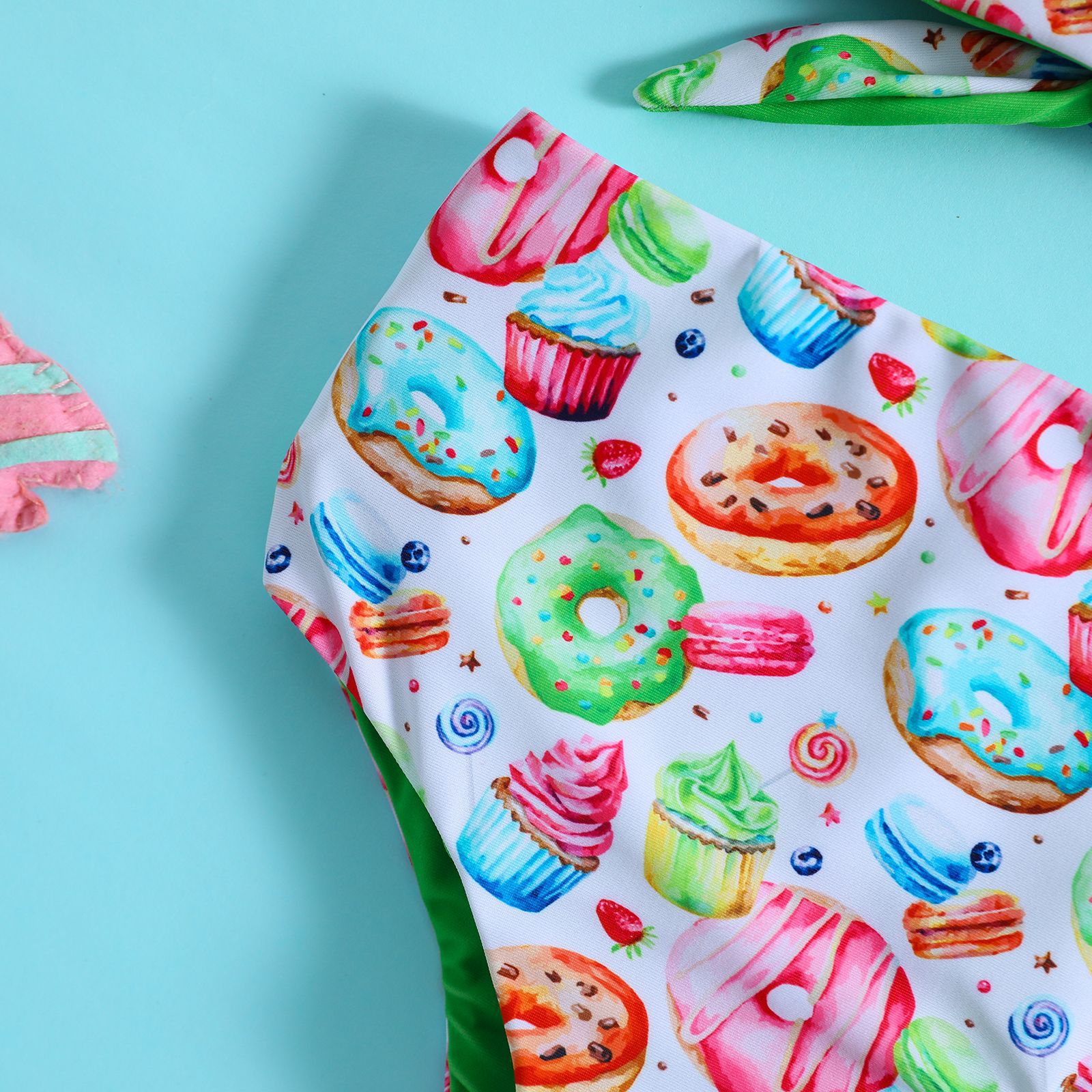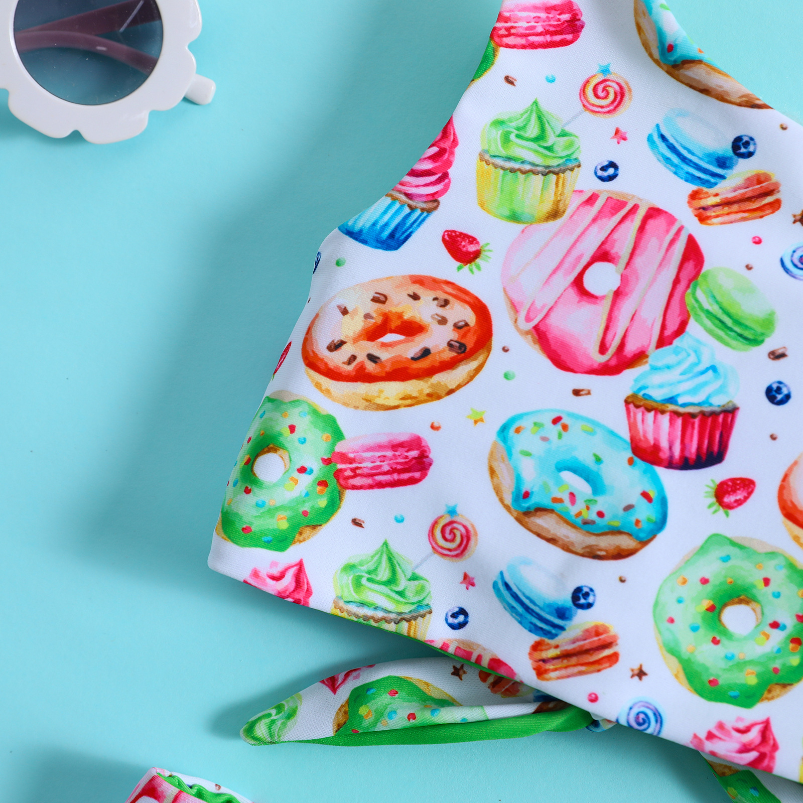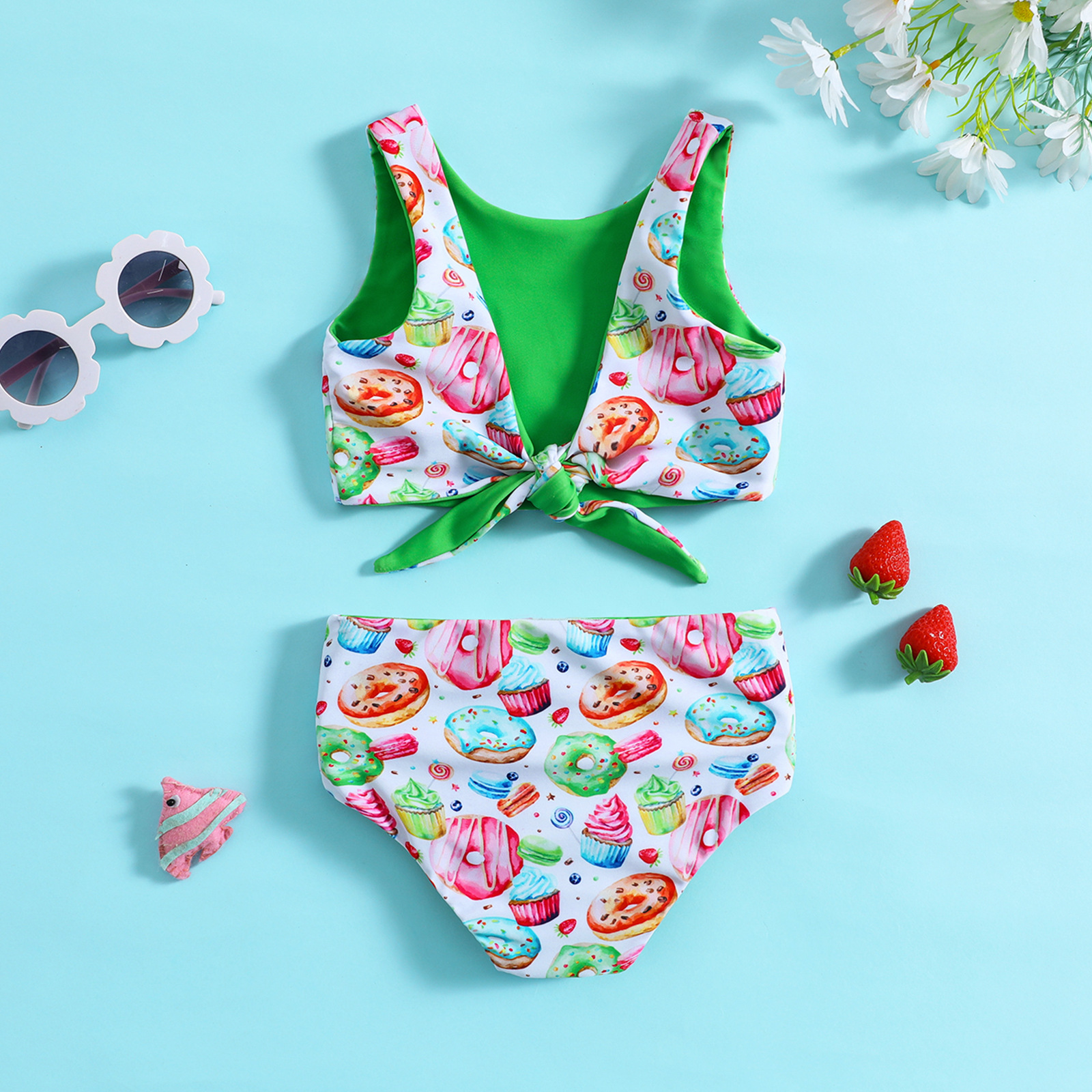 소녀와 아기 소녀를위한 크로스 보더 비키니 수영복 세트 양면 귀여운 꽃 프린트 2 종 세트