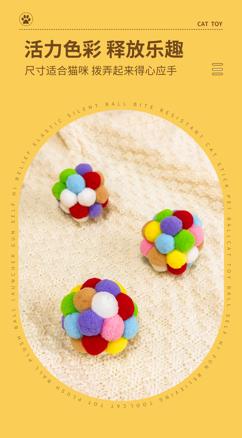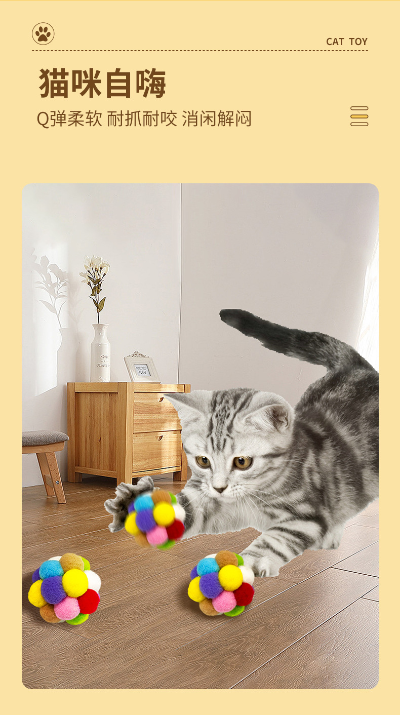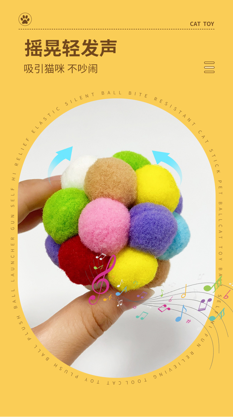 고양이 장난감 다채로운 봉제 공 다채로운 벨 공 고양이 셀프 하이 애완 동물 용품 폭발 고양이 공 고양이 장난감