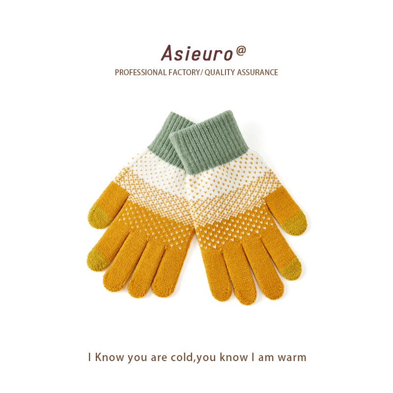 터치 스크린 장갑 남자와 여자 겨울 기모 두꺼운 따뜻한 양모 니트 학생 다섯 손가락 귀여운 승마 도매 손가락스토어 가기