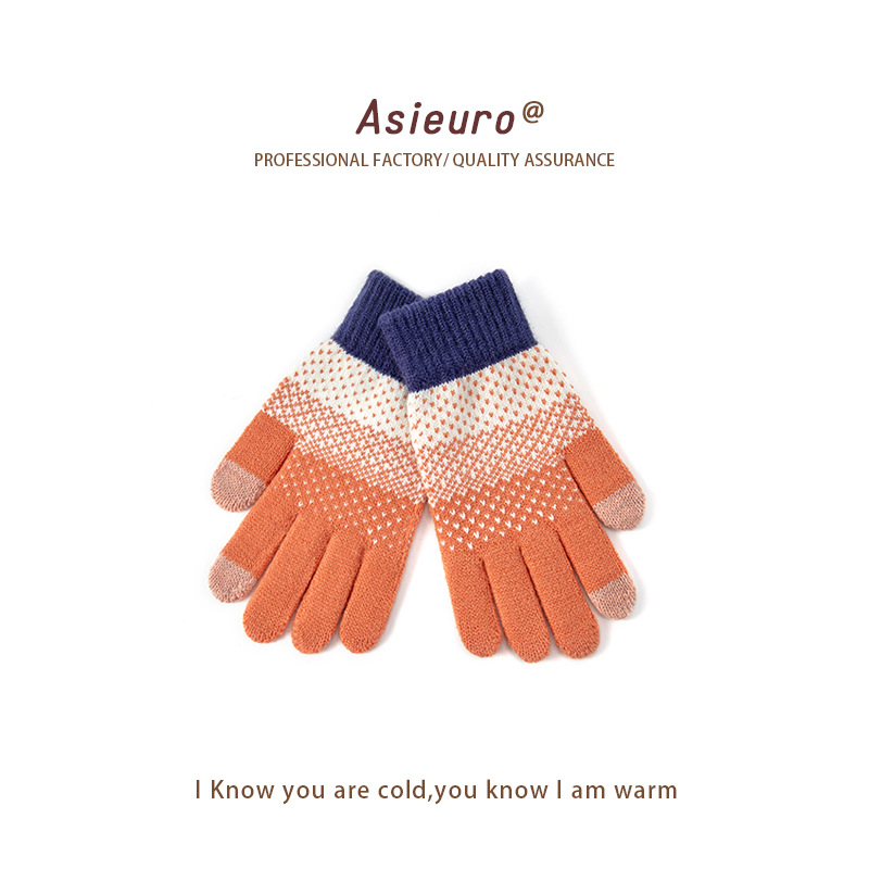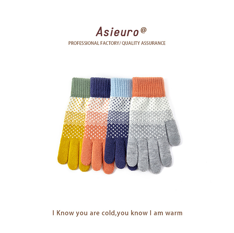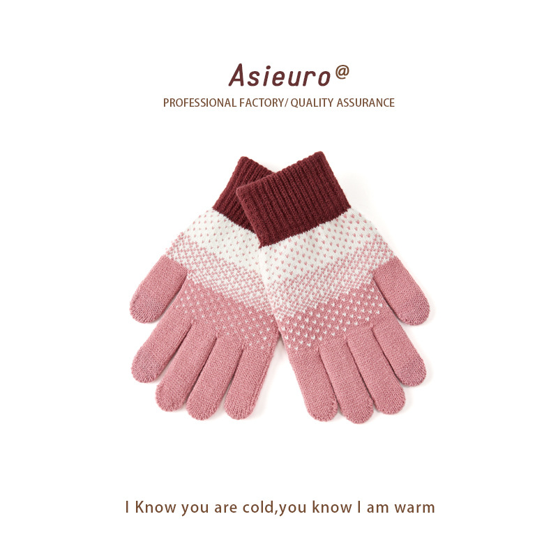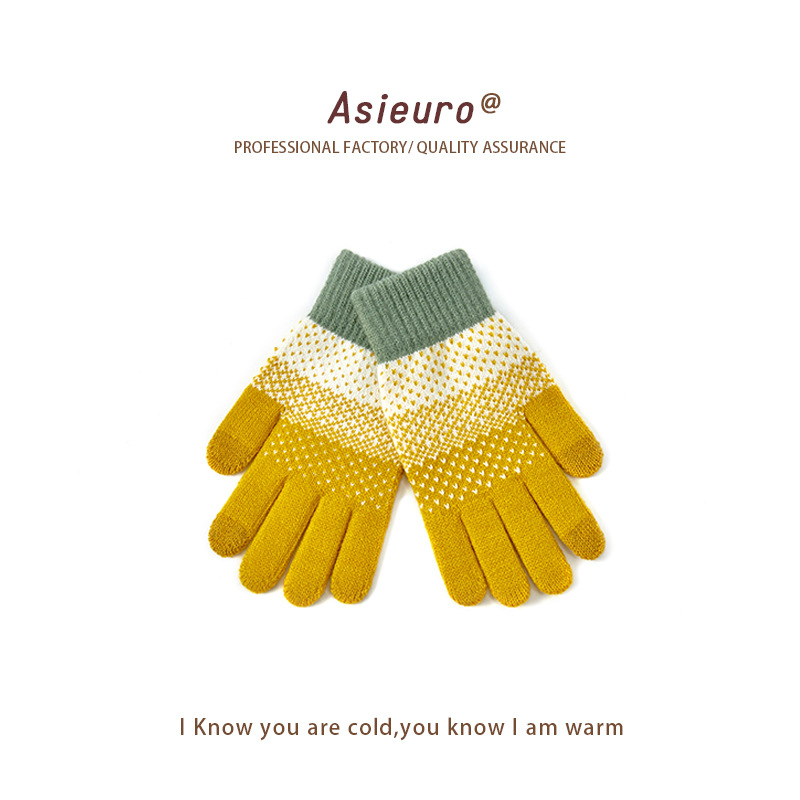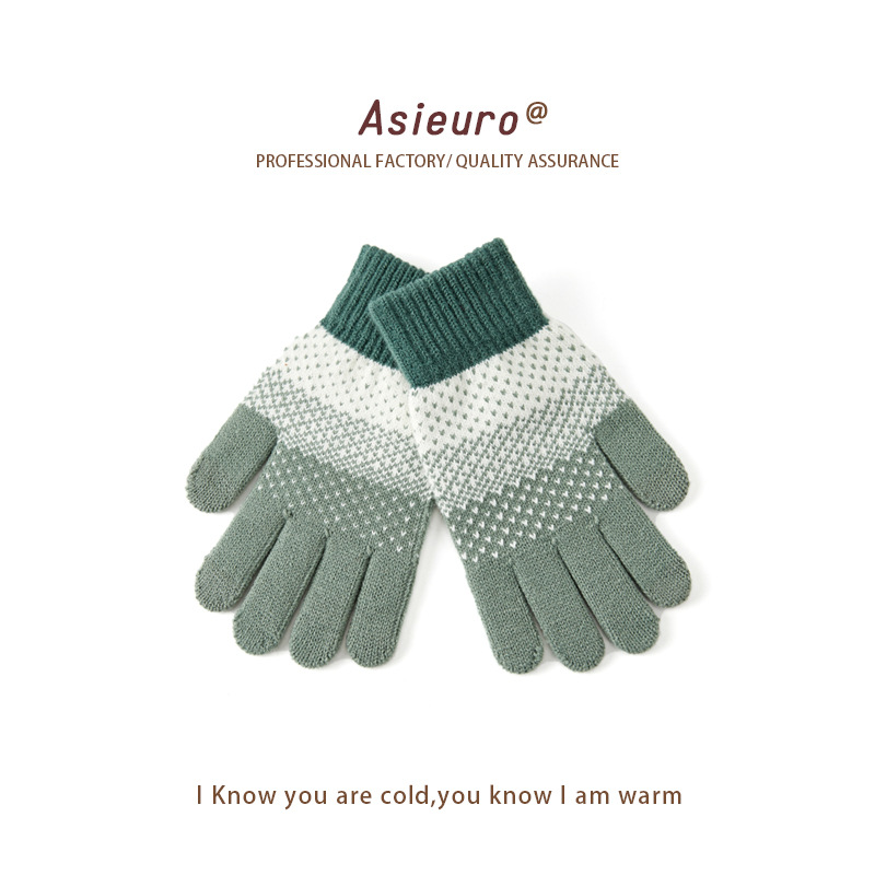 터치 스크린 장갑 남자와 여자 겨울 기모 두꺼운 따뜻한 양모 니트 학생 다섯 손가락 귀여운 승마 도매 손가락