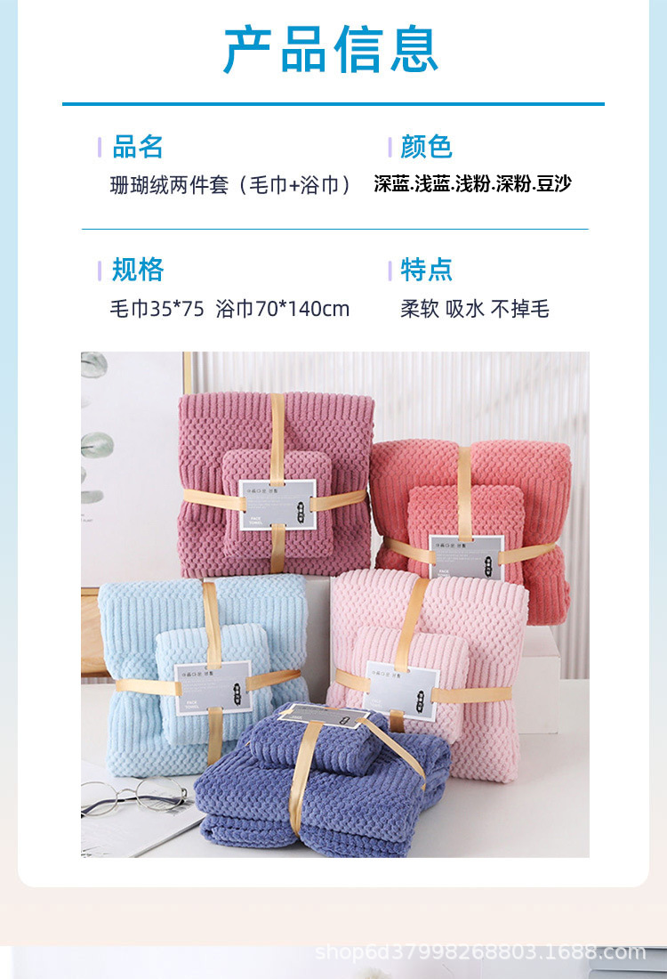 공장 재고 산호 양털 수건 목욕 타올 세트 상서로운 격자 두꺼운 부드러운 흡수성 보풀이없는 가정용 선물스토어 가기