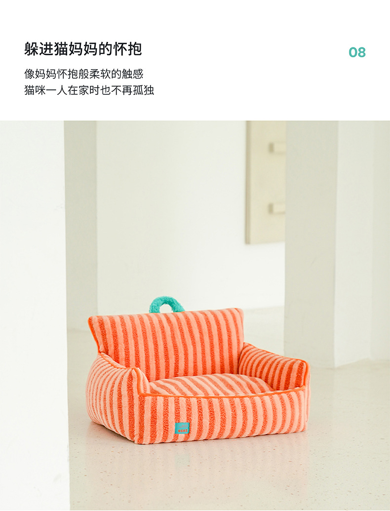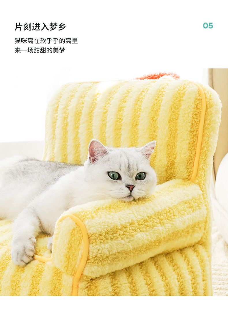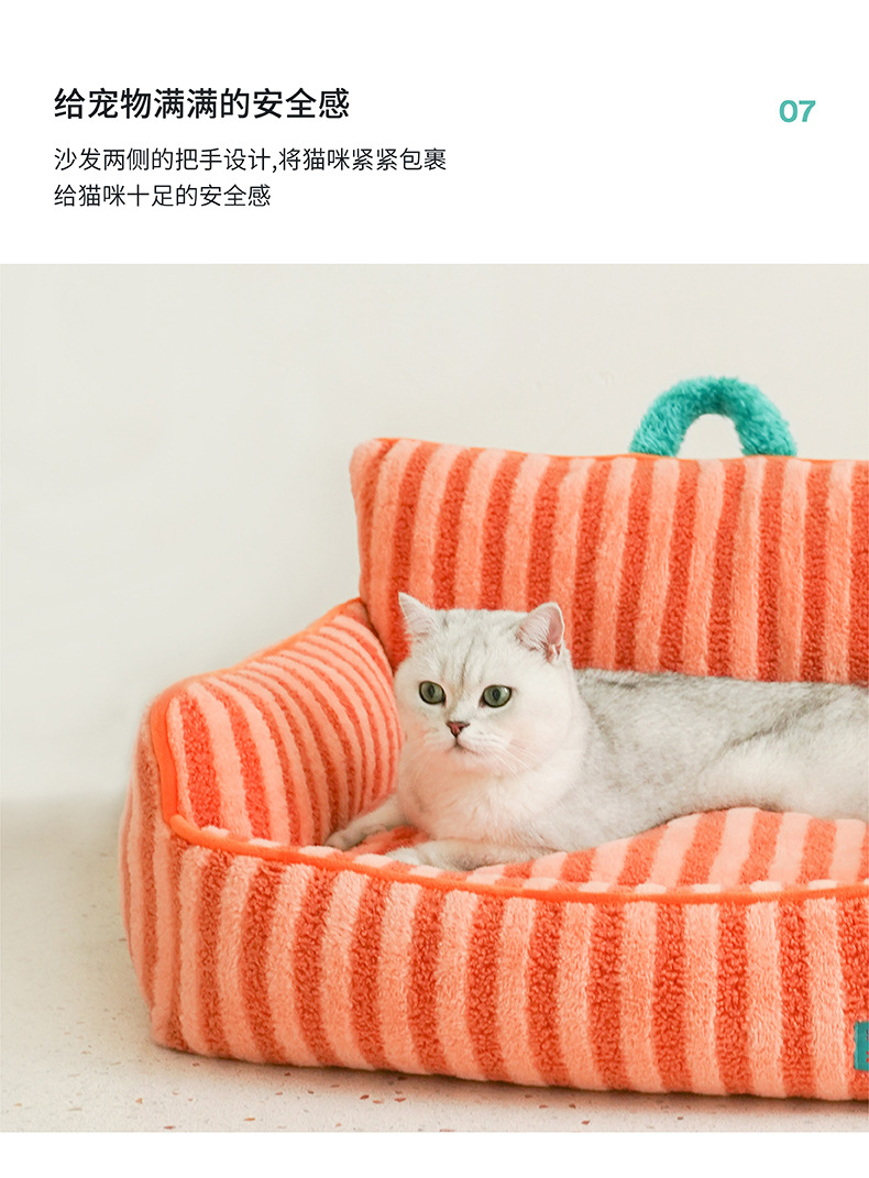 제즈 스트라이프 소프트 벨벳 애완 동물 소파 따뜻한 고양이 개 침대 사계절 유니버설 이동식 및 빨 수있는 귀여운 애완 동물 고양이 둥지스토어 가기