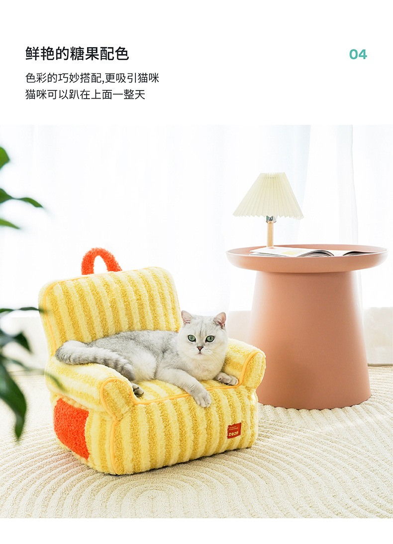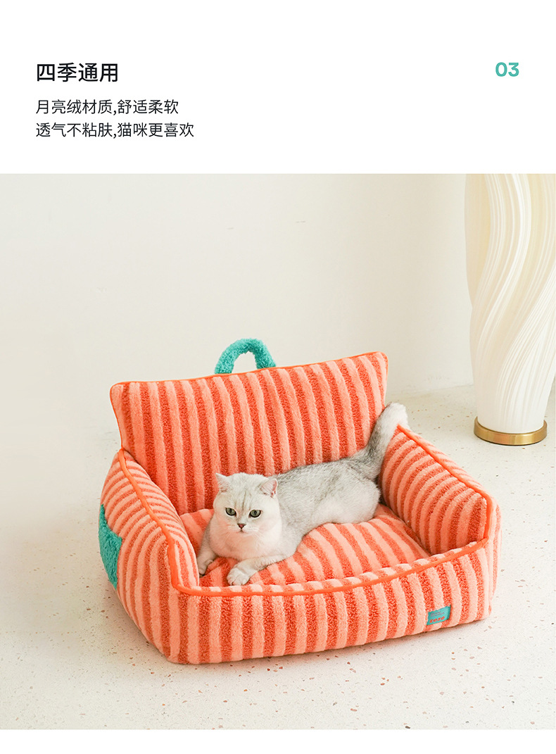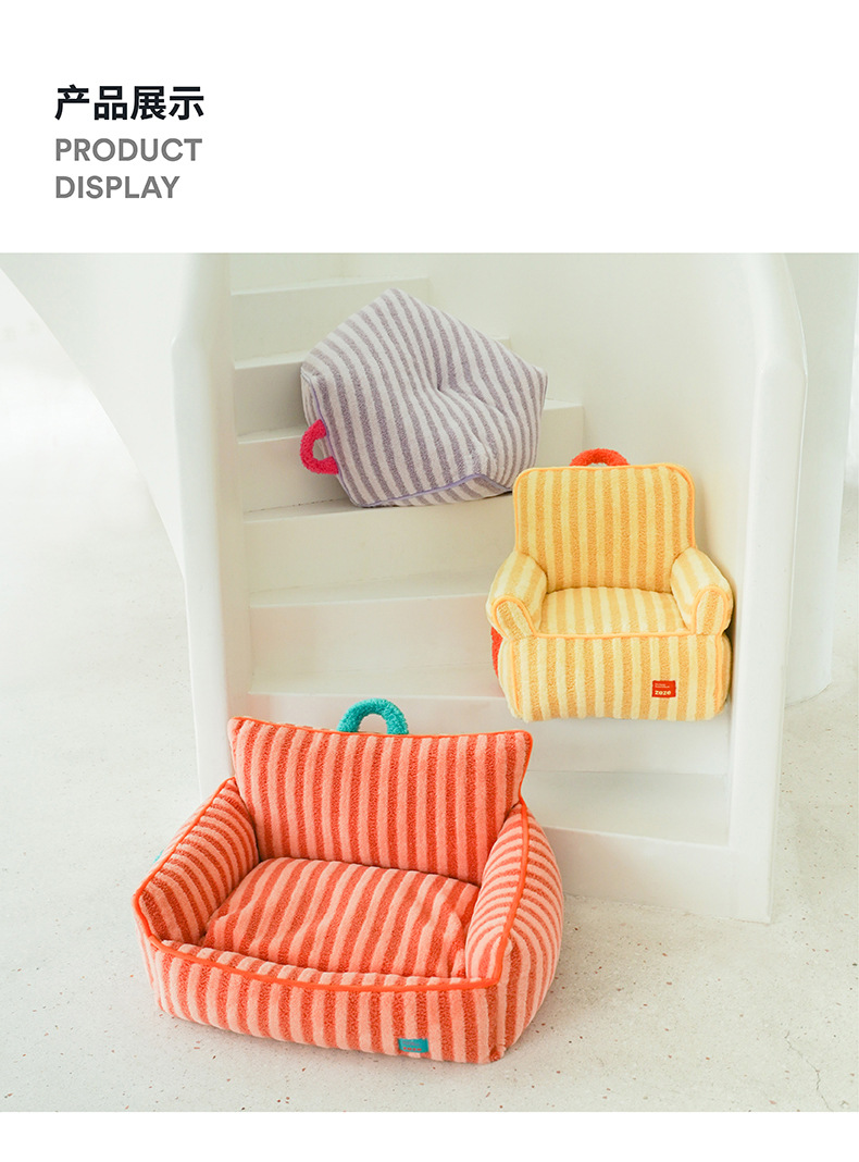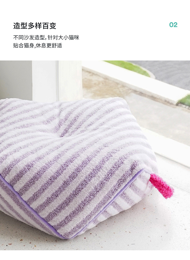 제즈 스트라이프 소프트 벨벳 애완 동물 소파 따뜻한 고양이 개 침대 사계절 유니버설 이동식 및 빨 수있는 귀여운 애완 동물 고양이 둥지