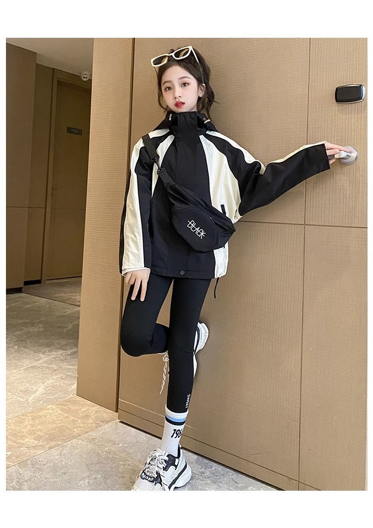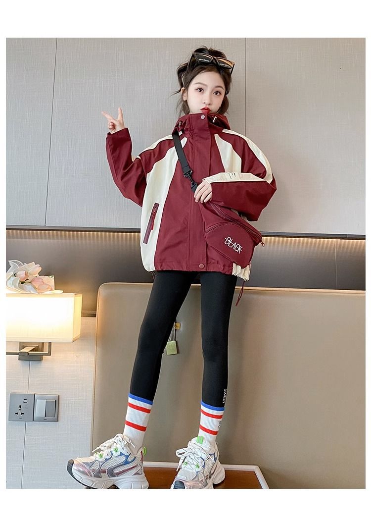 여아 코트 2024 봄, 가을 새로운 스타일 중대형 아동용 패셔너블한 컬러 매칭 재킷, 패셔너블한 재킷, 가을 방풍 재킷