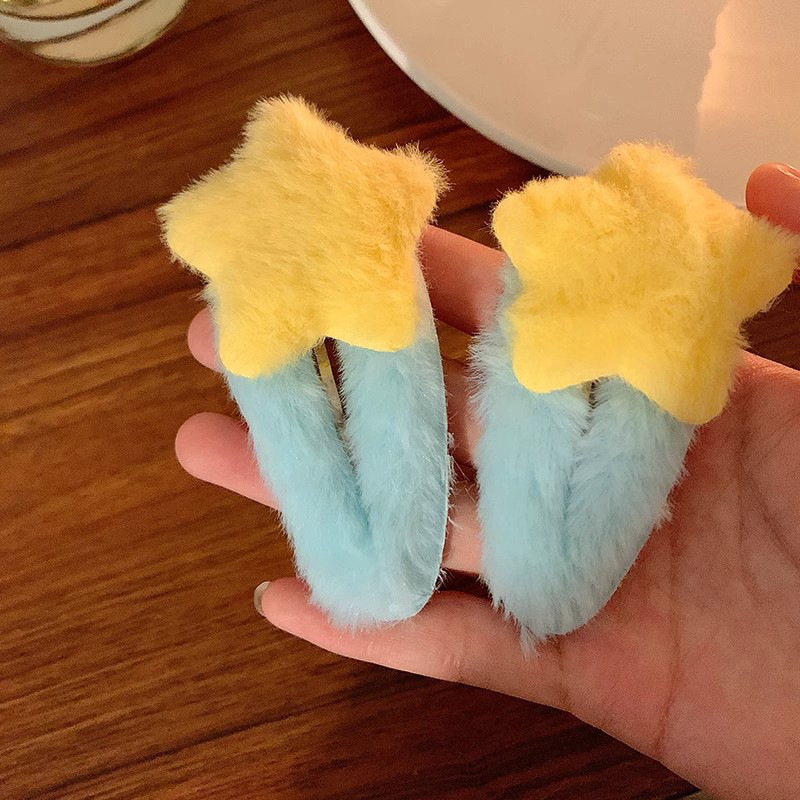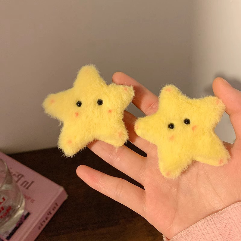 부드러운 사랑스러운 스타 개 클립 노란색 5 점 별 플러시 머리핀 소녀 머리핀 귀여운 머리 액세서리 도파민 보석스토어 가기
