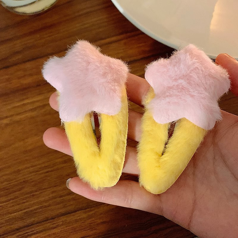 부드러운 사랑스러운 스타 개 클립 노란색 5 점 별 플러시 머리핀 소녀 머리핀 귀여운 머리 액세서리 도파민 보석