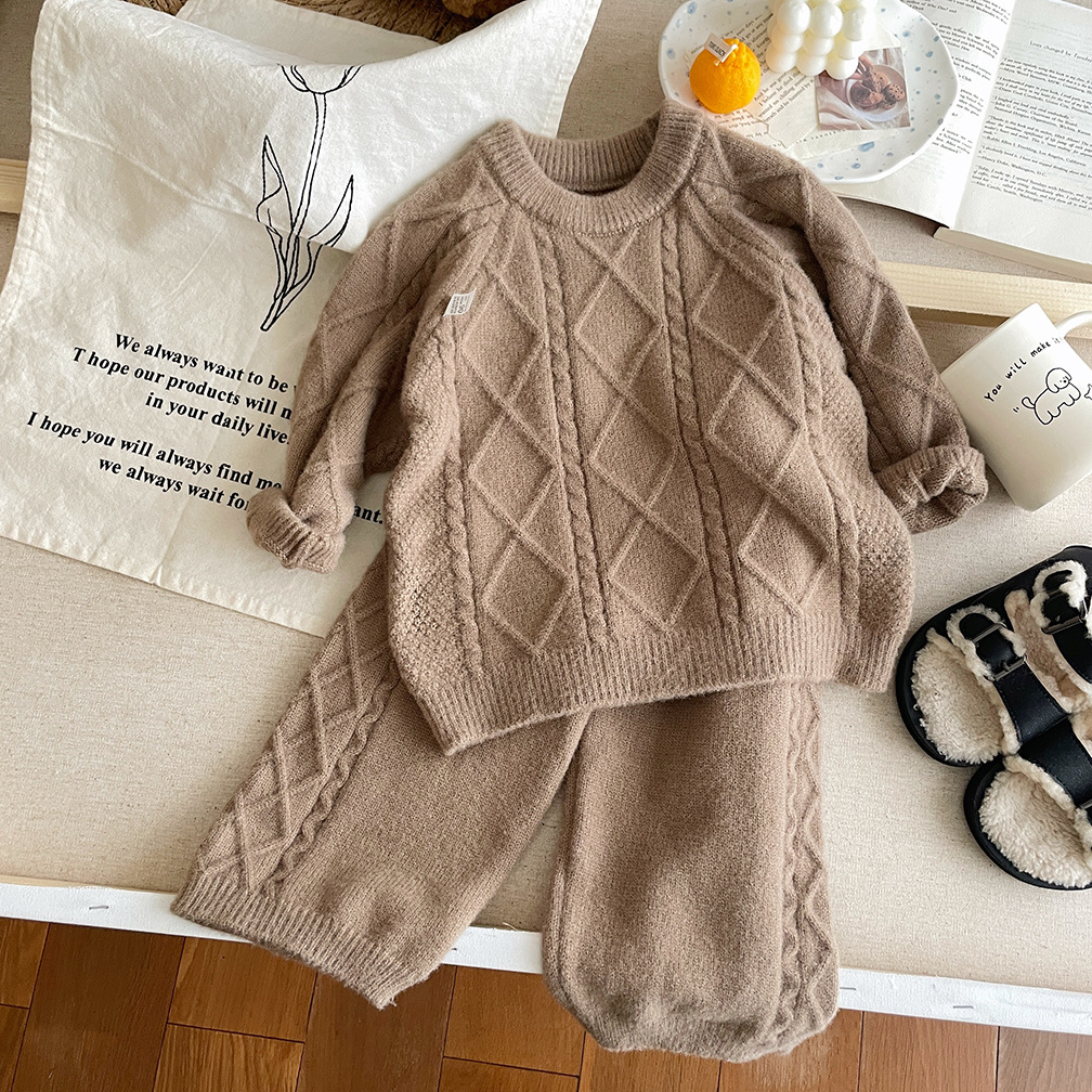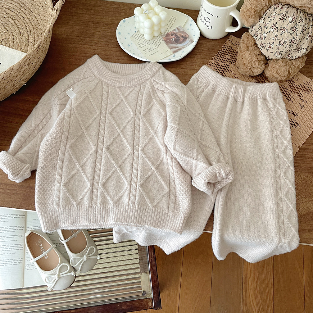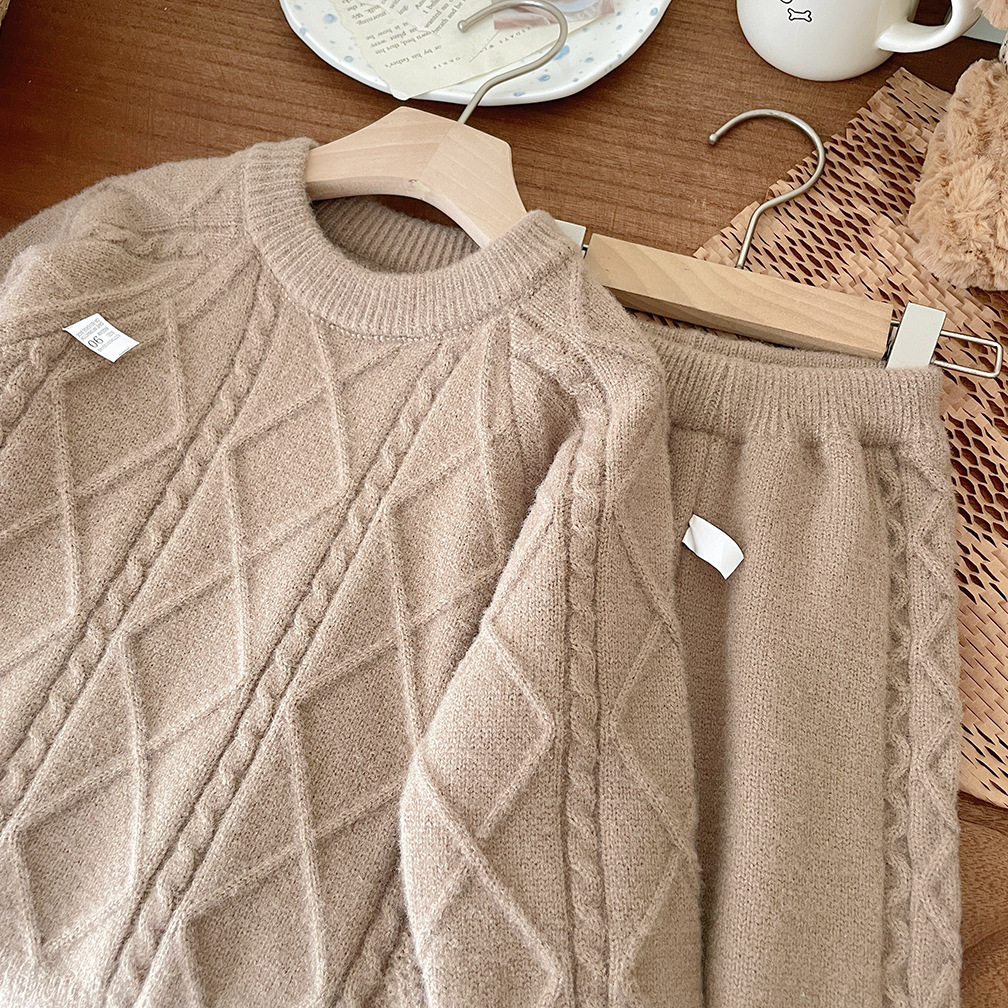 여아 겨울 패션 니트 세트 2025 신상 아동 패션 풀오버 가을 겨울 한국 스타일 투피스 세트