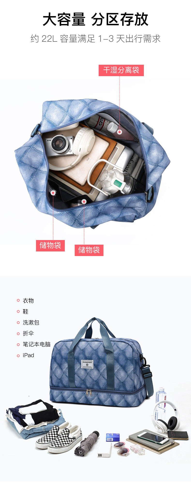 여행 가방 대용량 탑승 수하물 가방 건조 및 습식 분리 신발통 가방 커버 타이로드 여행 체육관 가방 크로스 보더 백스토어 가기