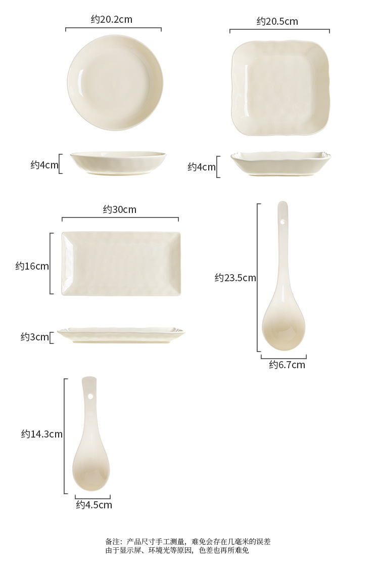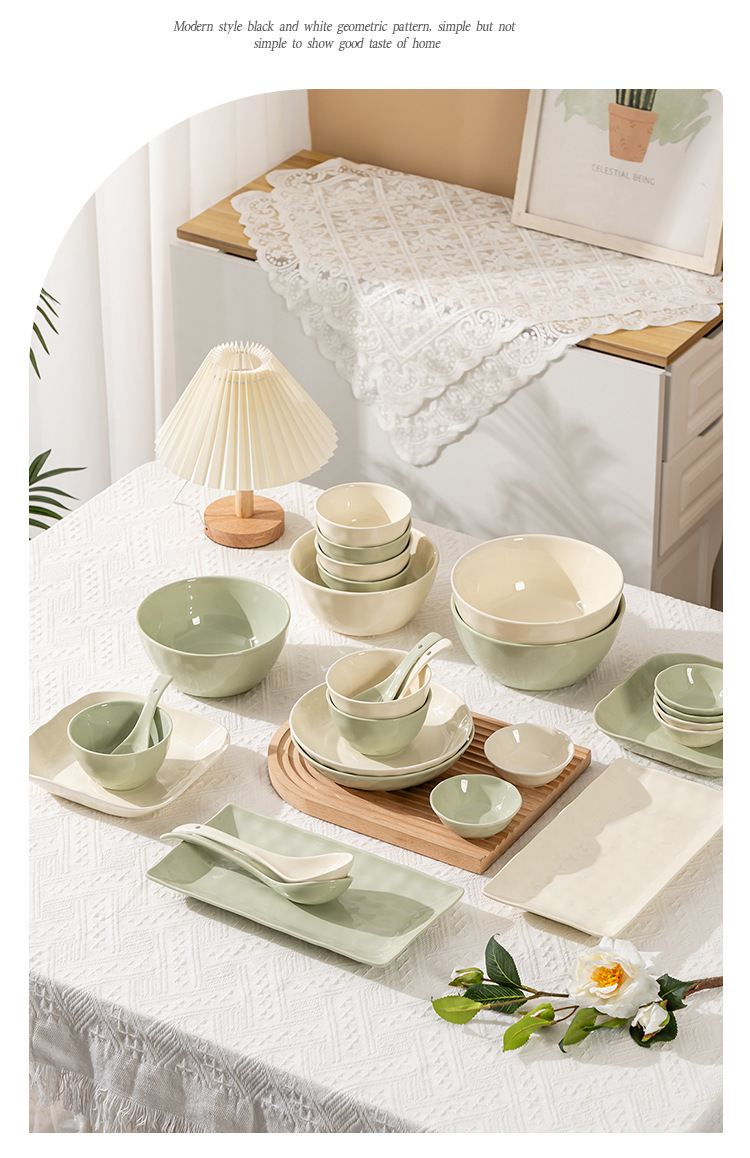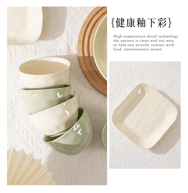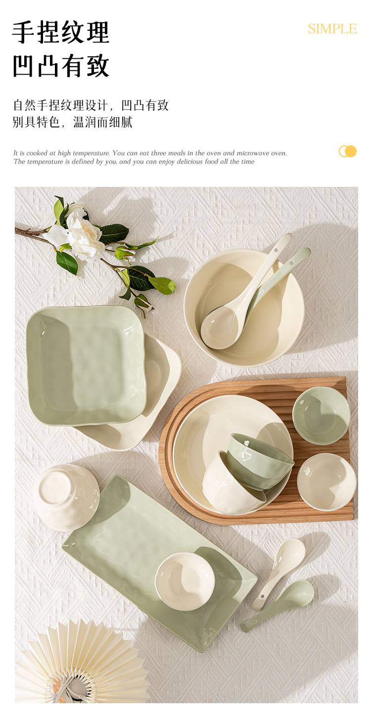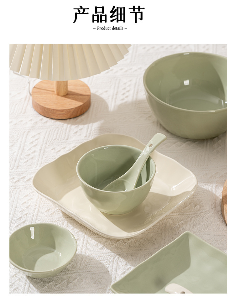 Underglaze 색상 간단한 밝은 색상 밥 그릇 접시 접시 조미료 접시 크고 작은 숟가락 간단한 스타일 가정용 세라믹 식기