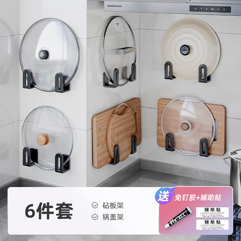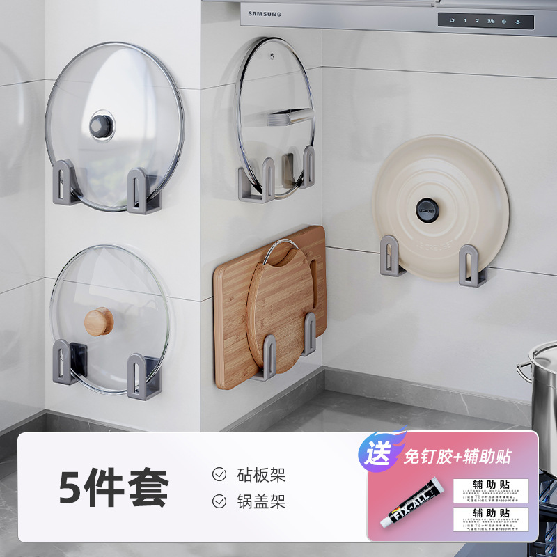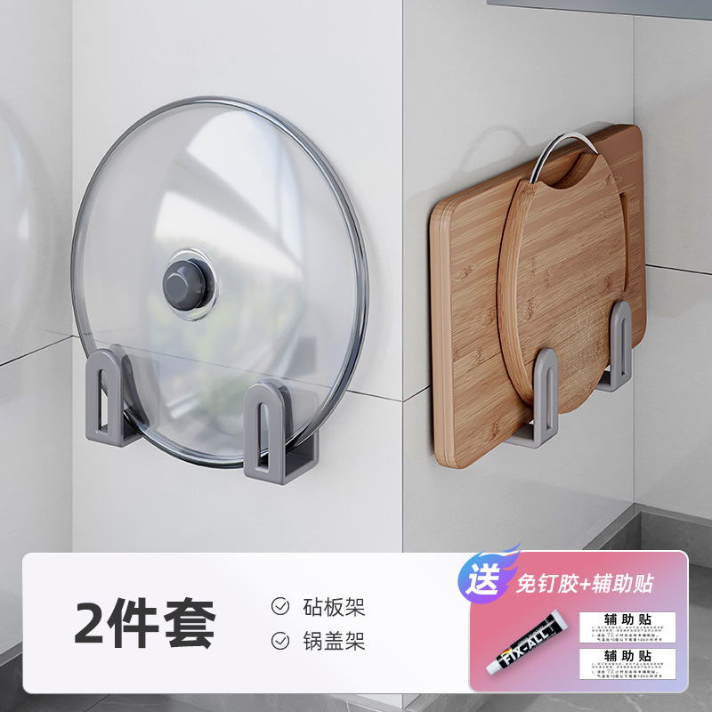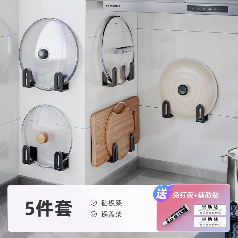 펀치 없는 냄비 커버 랙 주방 수납 랙 벽걸이 도마 도마 보관 랙 다기능 벽 보관 유물