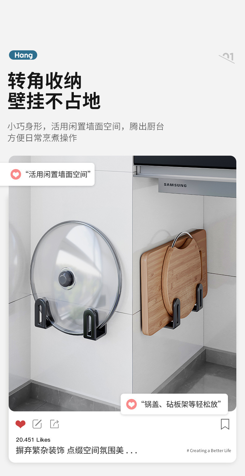 펀치 없는 냄비 커버 랙 주방 수납 랙 벽걸이 도마 도마 보관 랙 다기능 벽 보관 유물스토어 가기