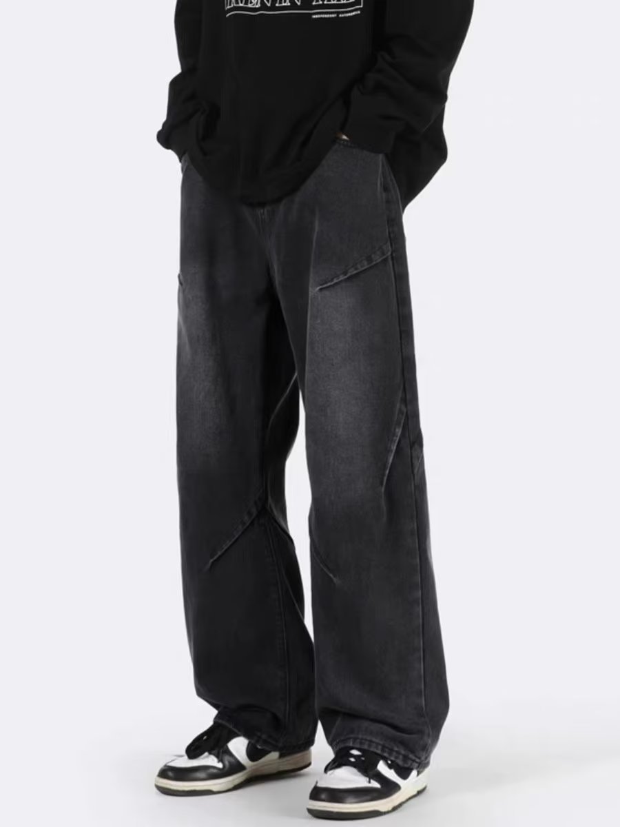 빈티지 블루 와이드 레그 청바지 남자의 느슨한 스트레이트 2023 새로운 아메리칸 스타일 하이 스트리트 소년 바지 가을 바지