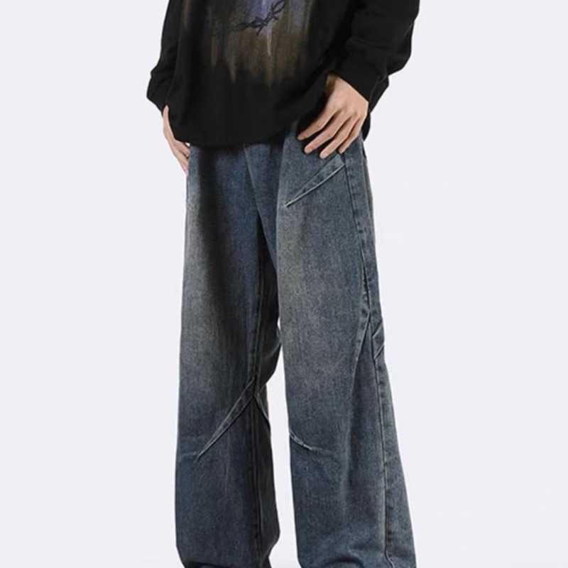 빈티지 블루 와이드 레그 청바지 남자의 느슨한 스트레이트 2023 새로운 아메리칸 스타일 하이 스트리트 소년 바지 가을 바지스토어 가기
