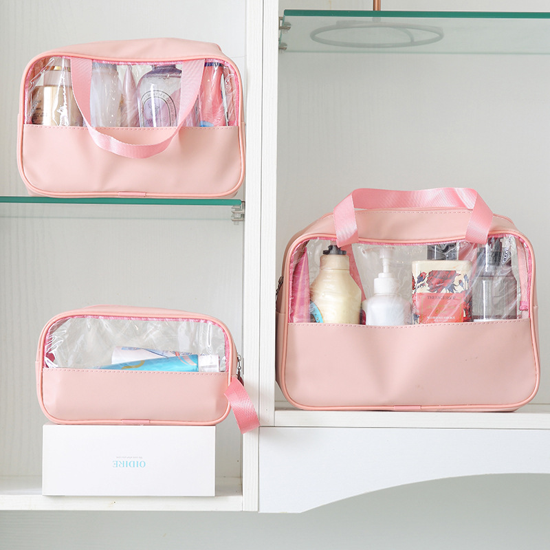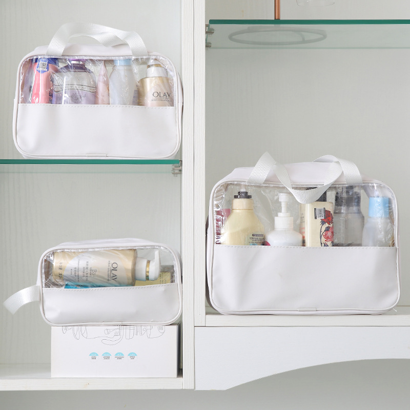 새로운 투명 화장품 세척 가방 휴대용 pu 목욕 가방 방수 대용량 저장 가방 pvc 접합 화장품 가방스토어 가기