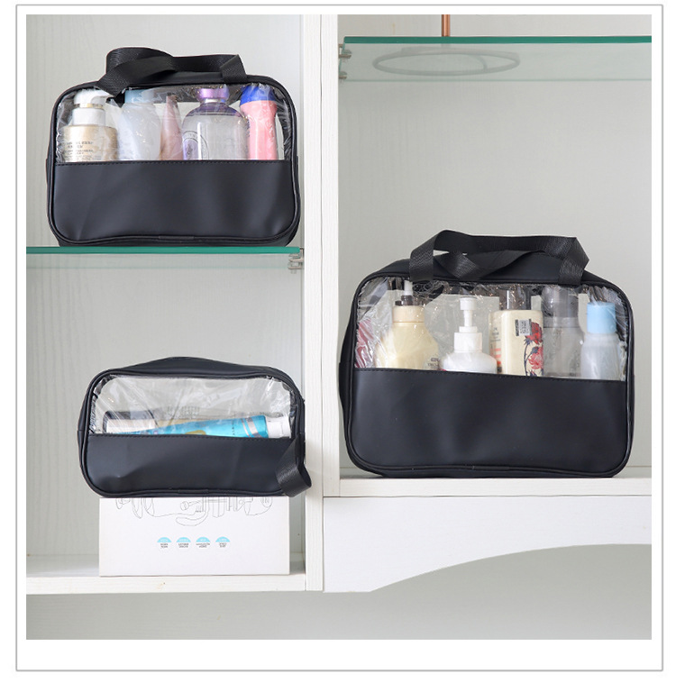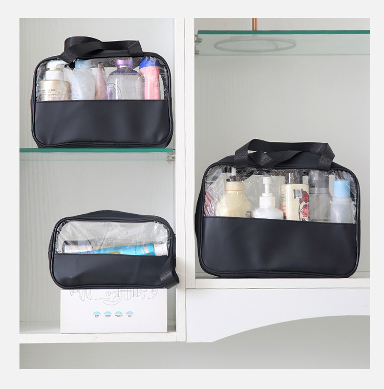 새로운 투명 화장품 세척 가방 휴대용 pu 목욕 가방 방수 대용량 저장 가방 pvc 접합 화장품 가방