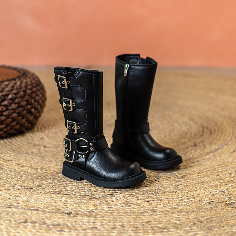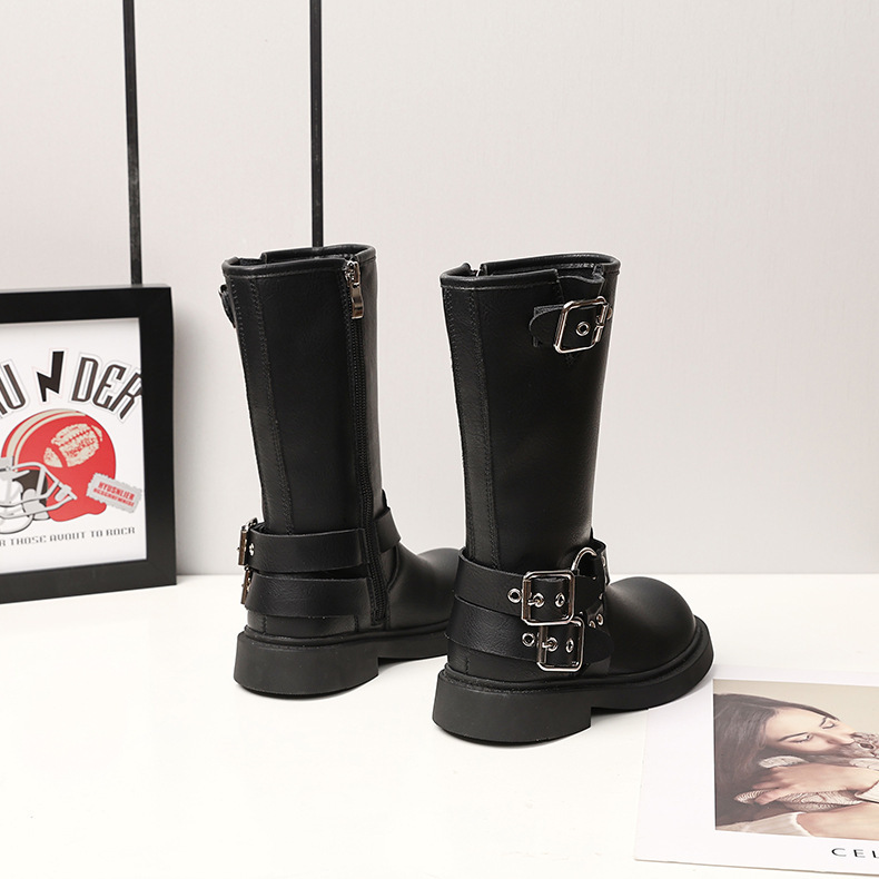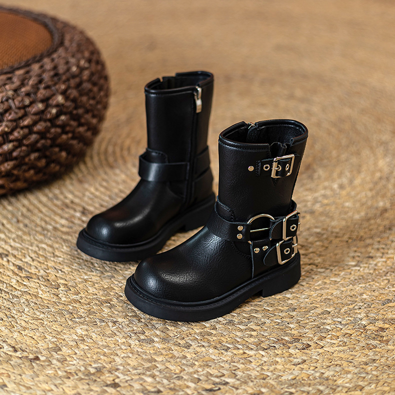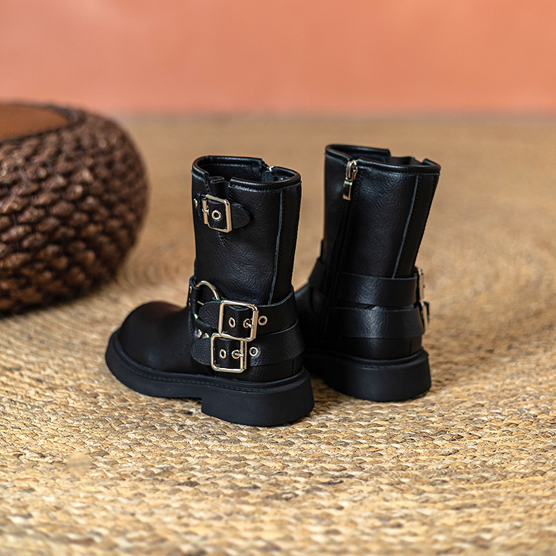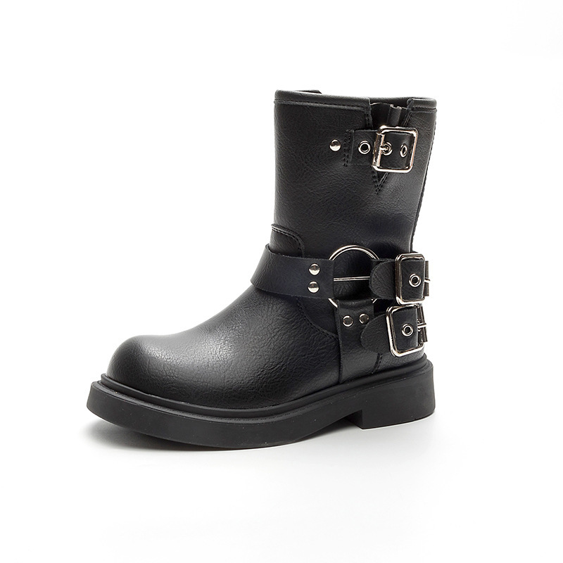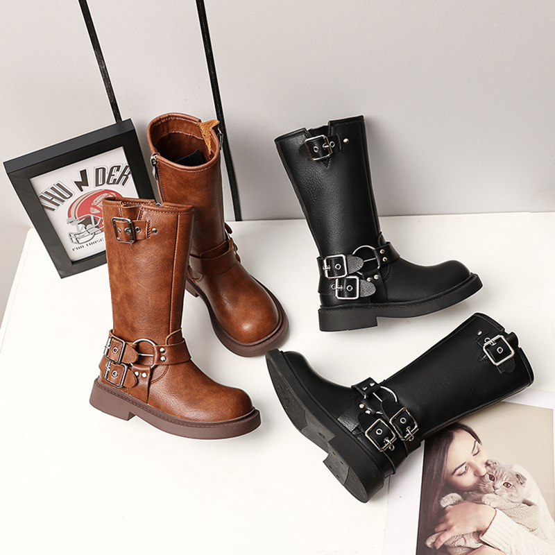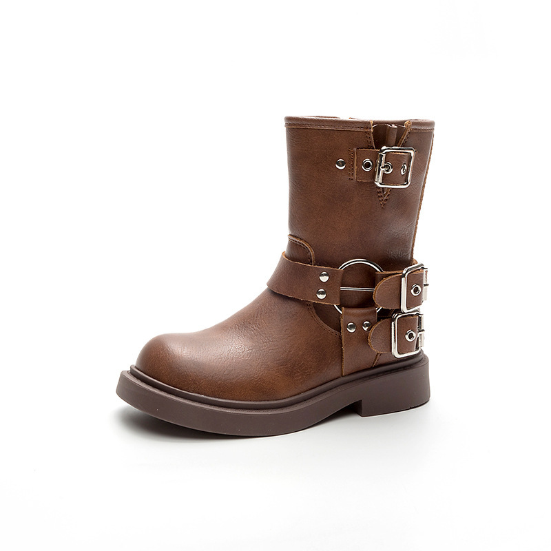 어린이 마틴 부츠 한국 스타일 신발 짧은 부츠 다크 브라운 라이더 부츠 카우보이 부츠 소녀 두꺼운 밑창 부드러운 가죽 빈티지 신발