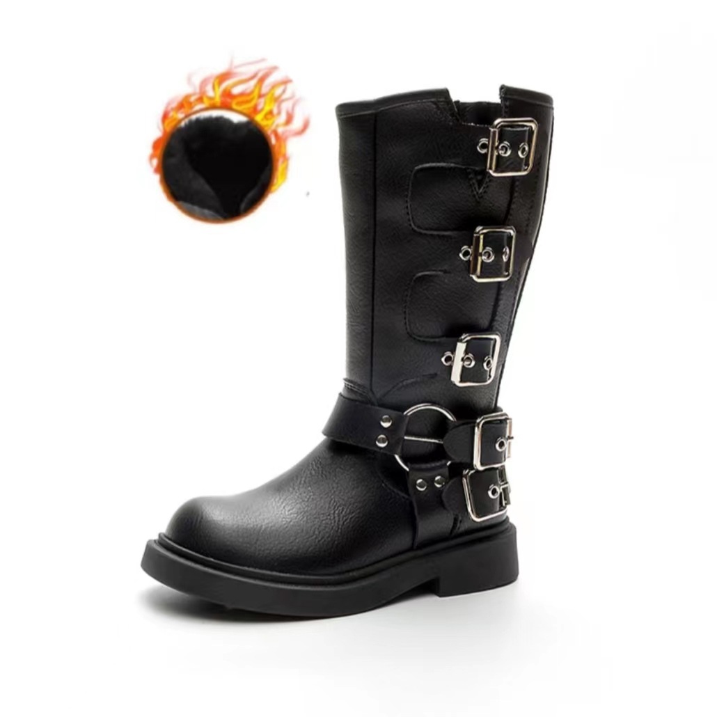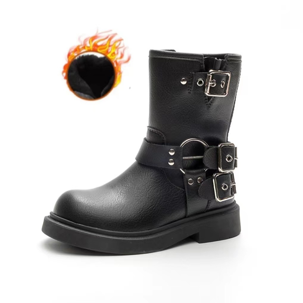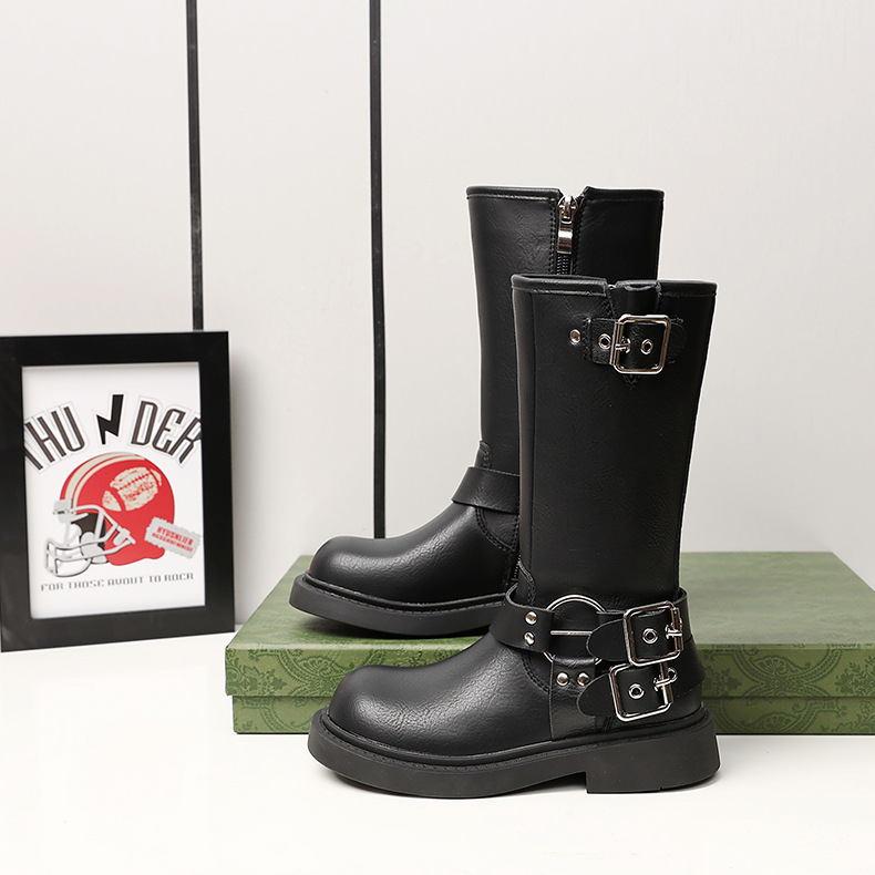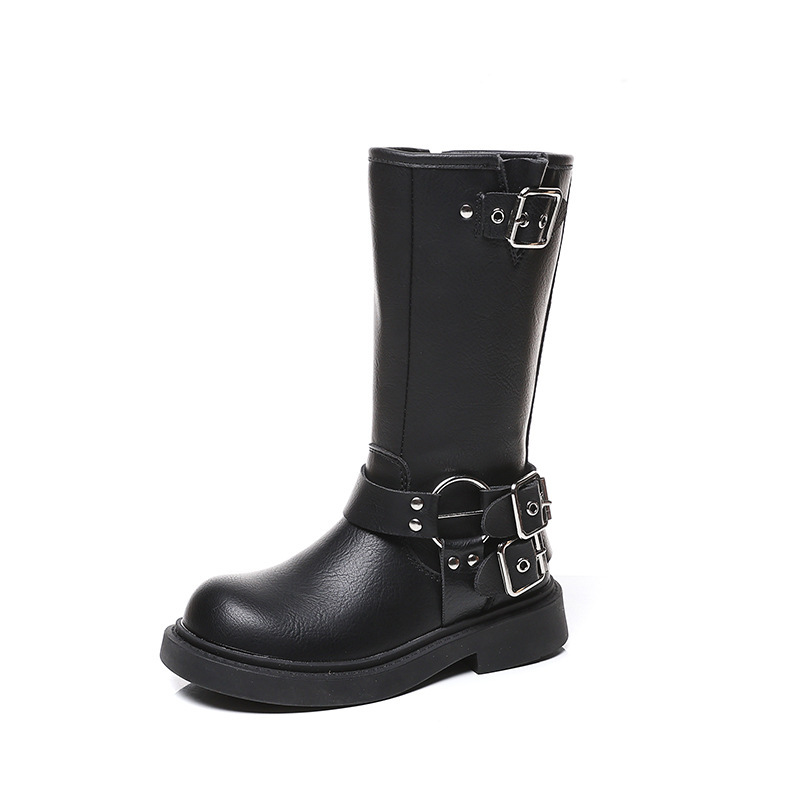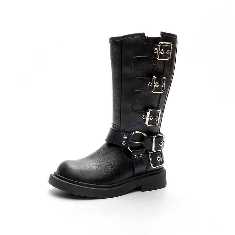 어린이 마틴 부츠 한국 스타일 신발 짧은 부츠 다크 브라운 라이더 부츠 카우보이 부츠 소녀 두꺼운 밑창 부드러운 가죽 빈티지 신발
