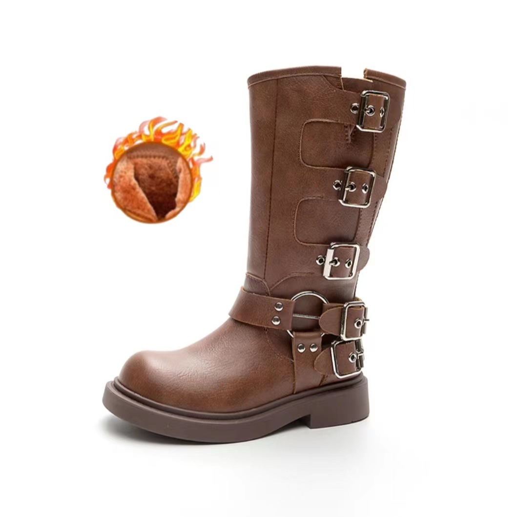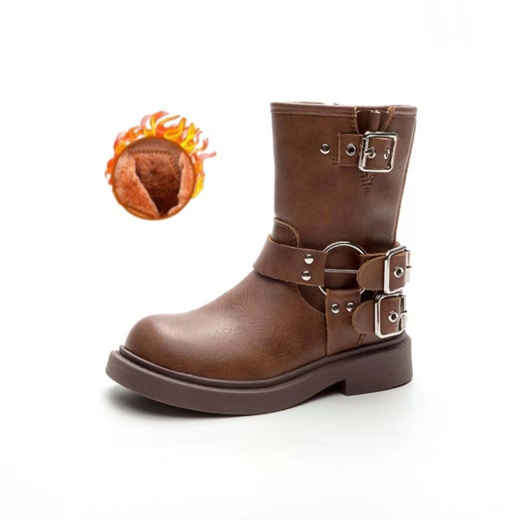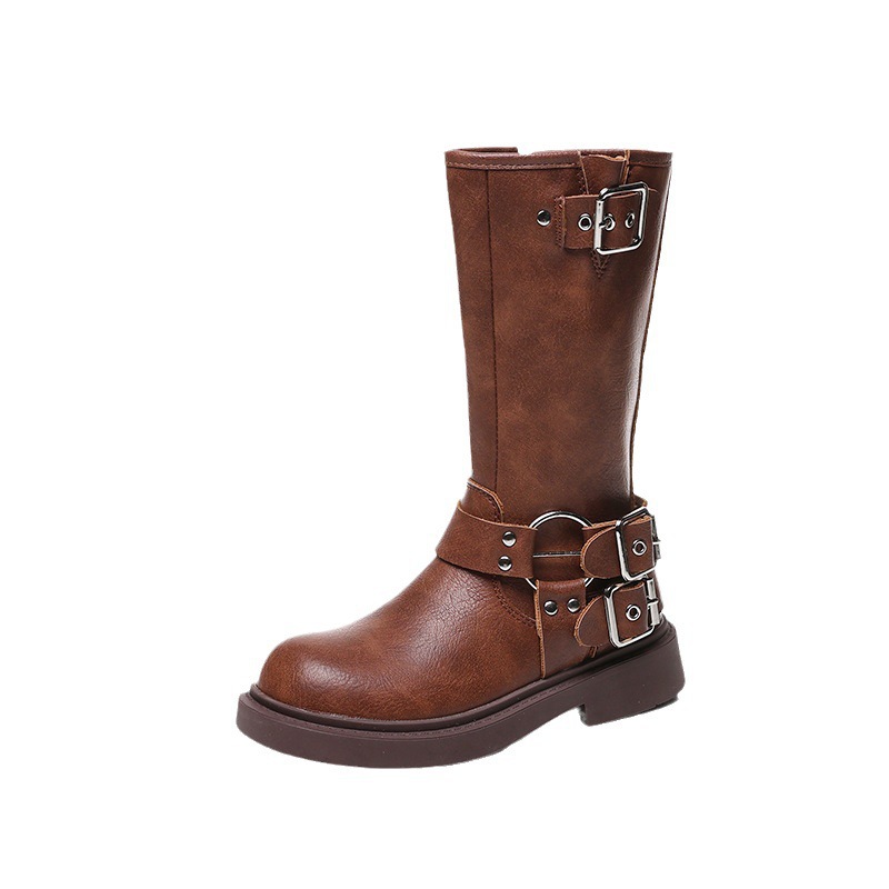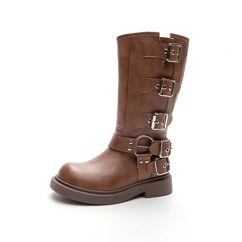 어린이 마틴 부츠 한국 스타일 신발 짧은 부츠 다크 브라운 라이더 부츠 카우보이 부츠 소녀 두꺼운 밑창 부드러운 가죽 빈티지 신발스토어 가기
