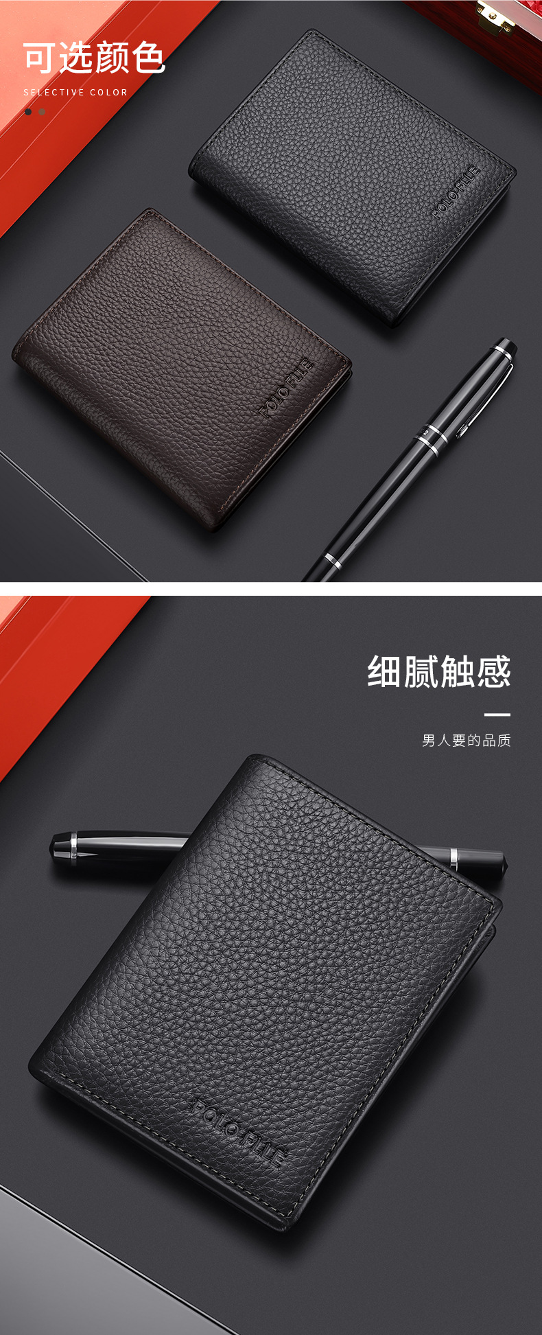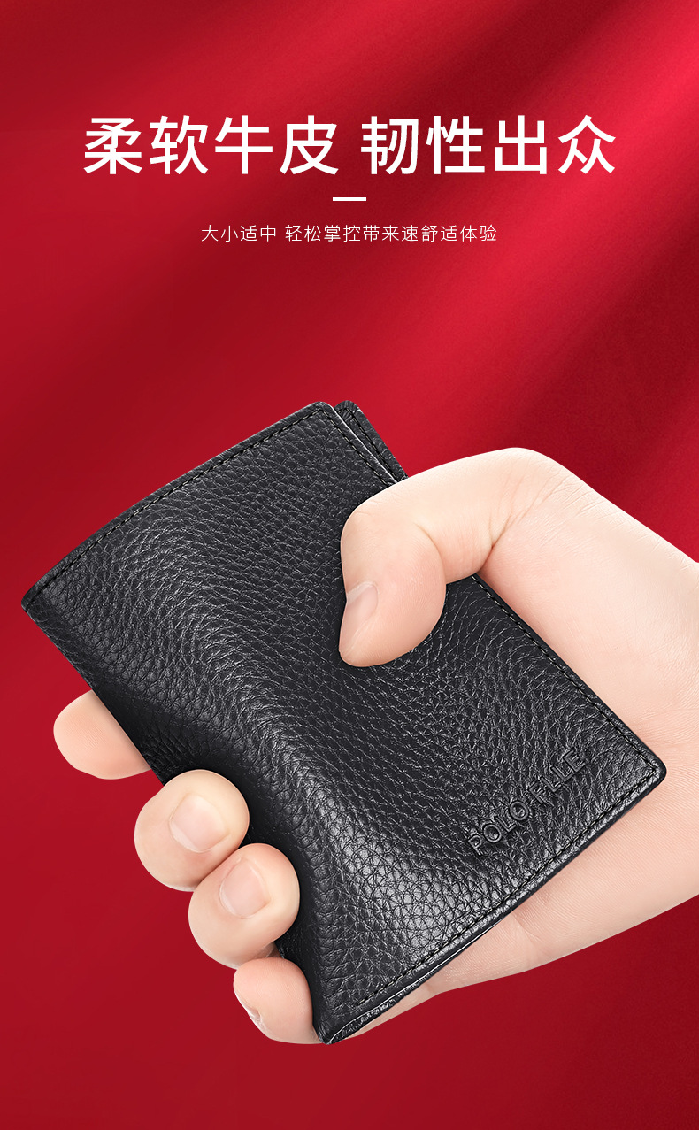 폴 지갑 남성용 정품 가죽 쇼트 올 매치 새로운 첫 번째 레이어 소가죽 지갑 원피스 카드 가방 얇은 지갑 아버지스토어 가기