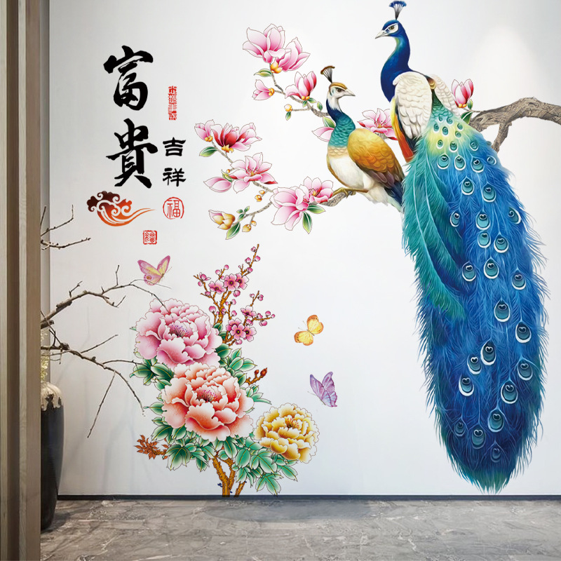 컬러 벽 스티커 CH69075 풍부하고 행운의 블루 공작 홈 룸 벽 소파 배경 벽 장식