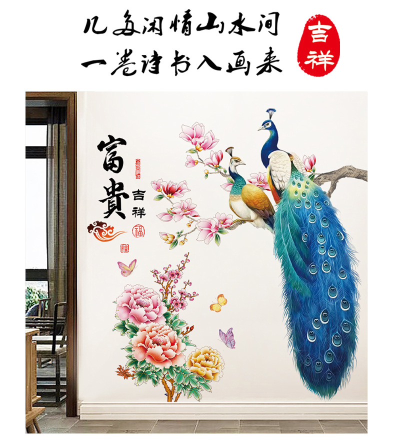 컬러 벽 스티커 CH69075 풍부하고 행운의 블루 공작 홈 룸 벽 소파 배경 벽 장식스토어 가기