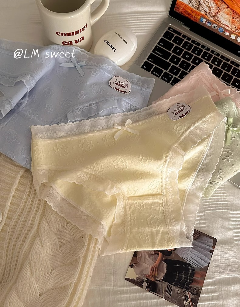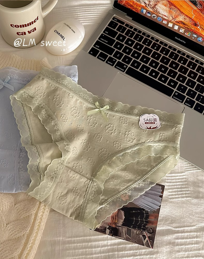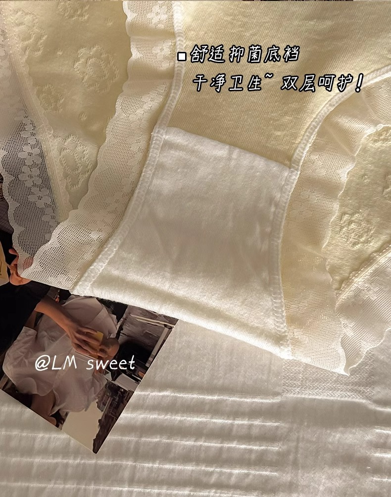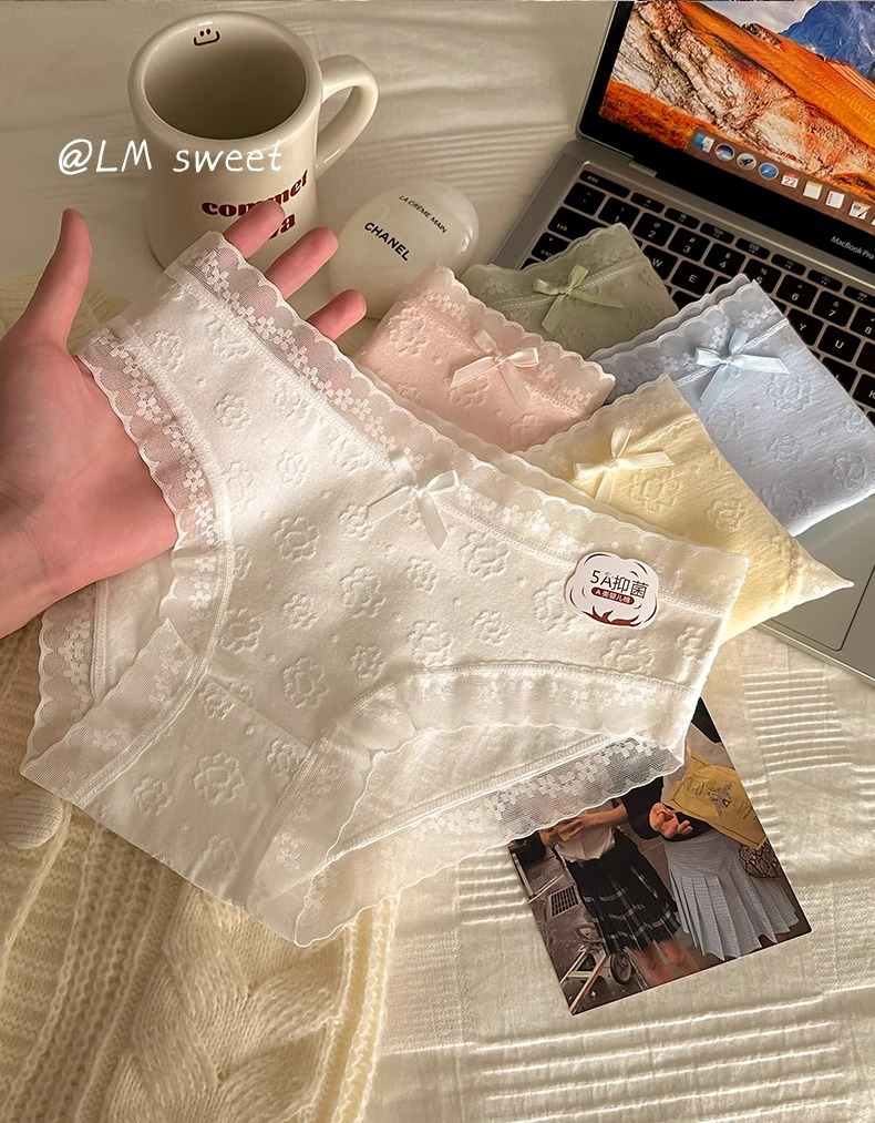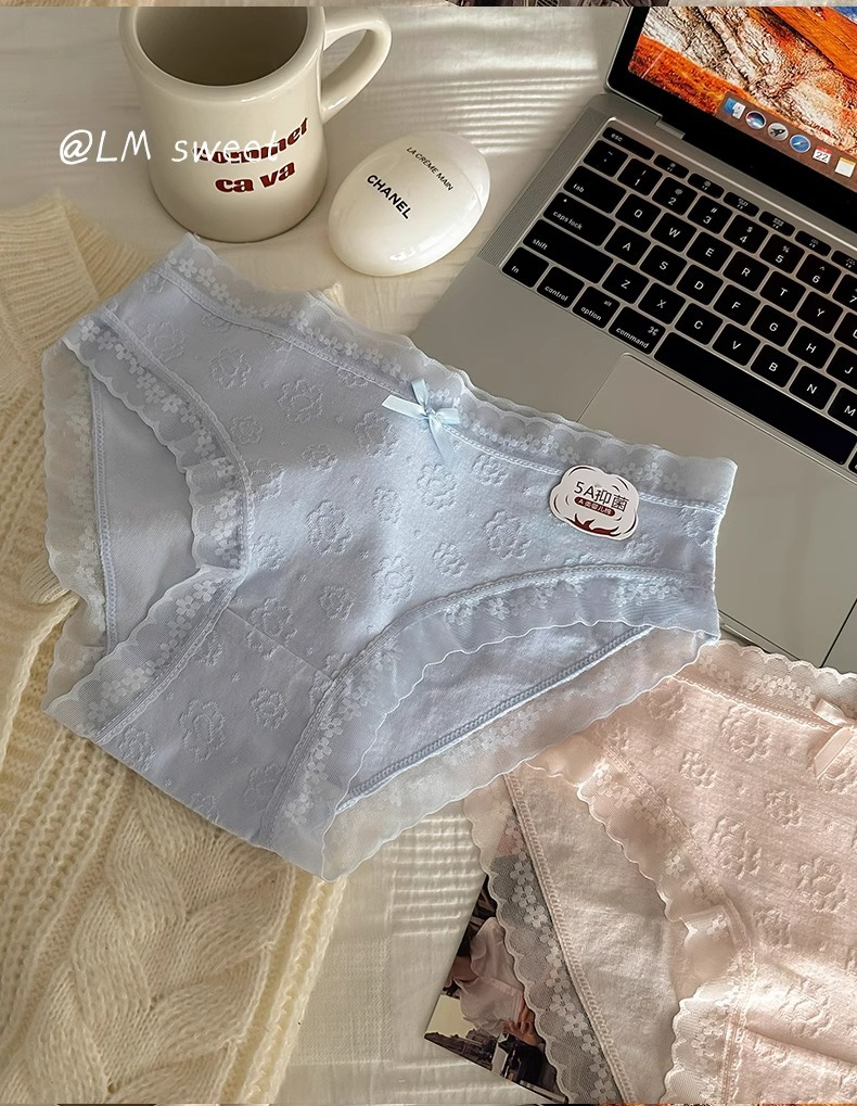 달콤한 속옷 여성의면 항균 5A 항균 섹시 레이스 코튼 가랑이 허리 2023 새로운 원활한 반바지