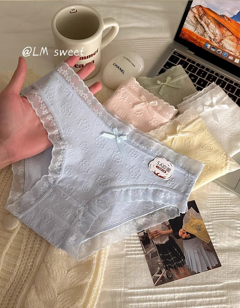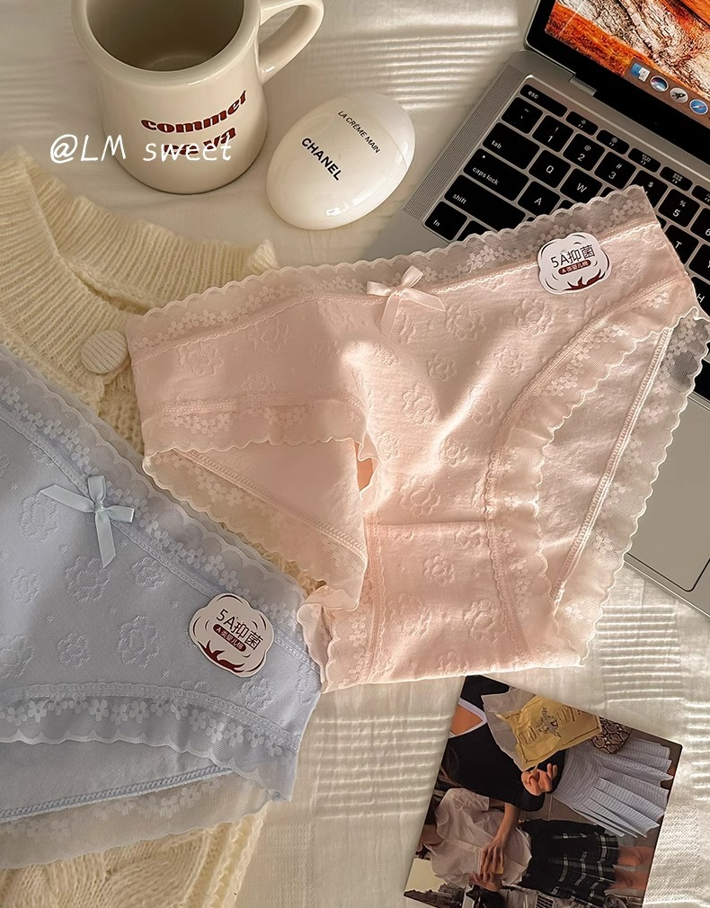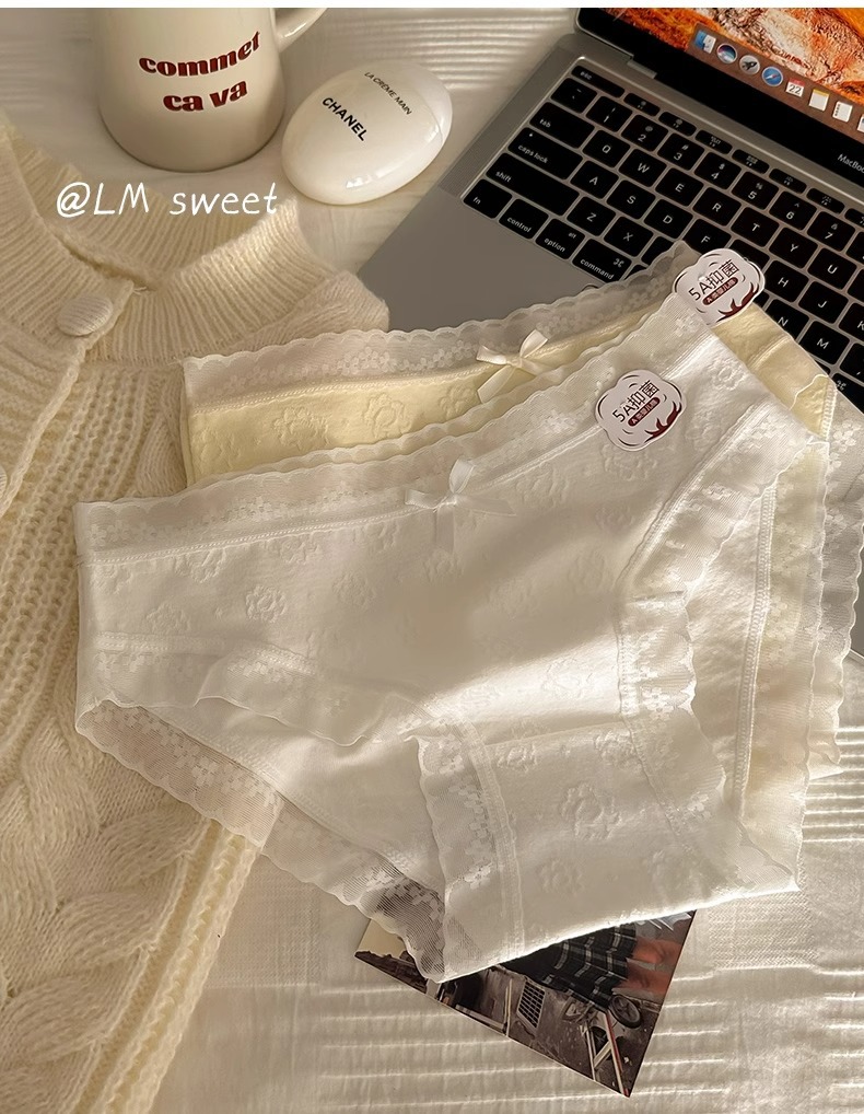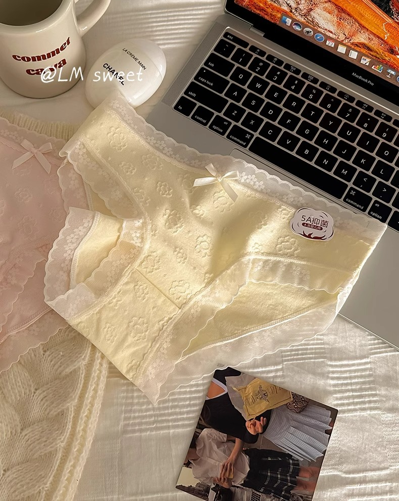 달콤한 속옷 여성의면 항균 5A 항균 섹시 레이스 코튼 가랑이 허리 2023 새로운 원활한 반바지