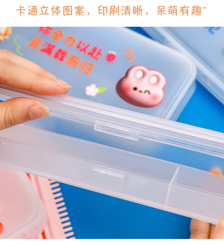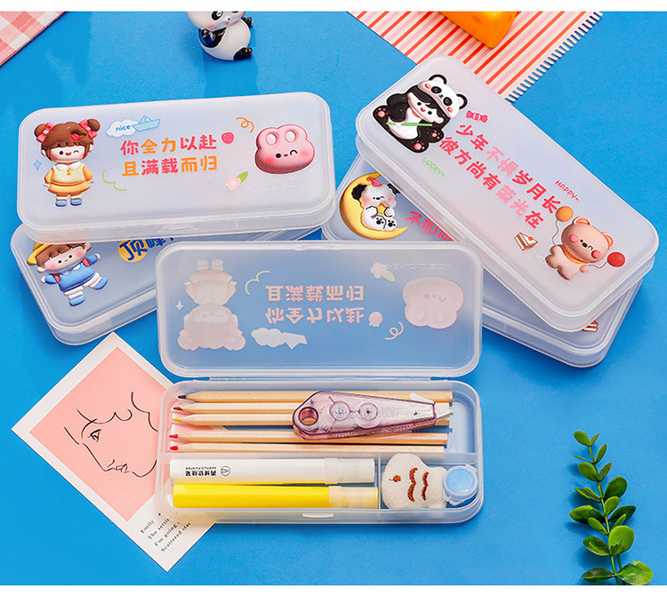 만화 영감 텍스트 문구 상자 높은 색상 가치 학생 투명 대용량 필통 귀여운 젖빛 필통