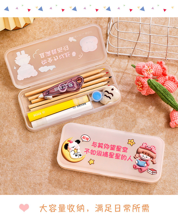 만화 영감 텍스트 문구 상자 높은 색상 가치 학생 투명 대용량 필통 귀여운 젖빛 필통스토어 가기