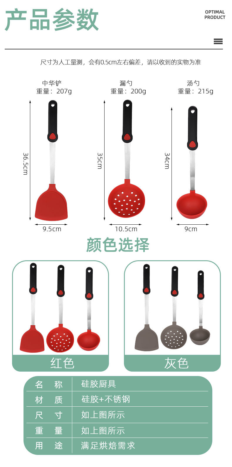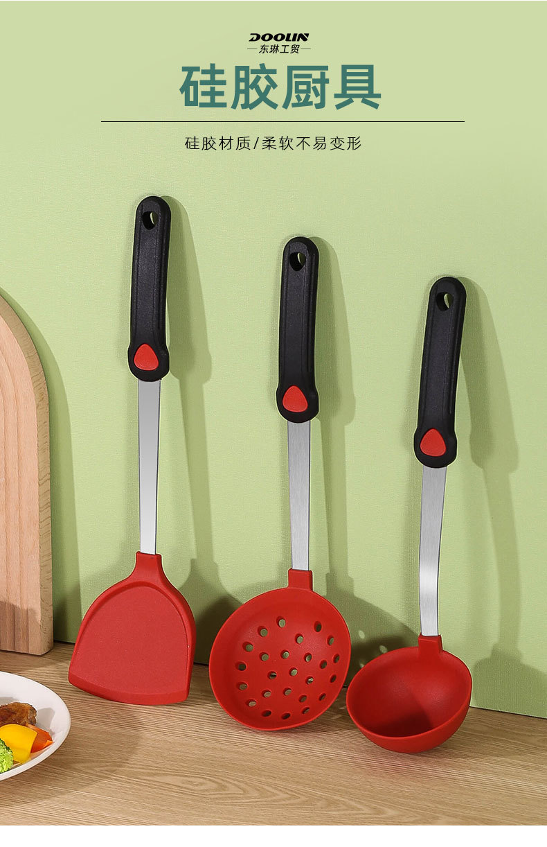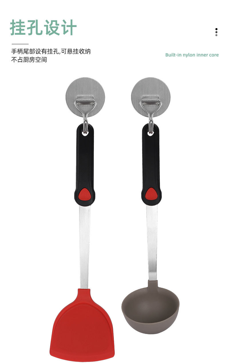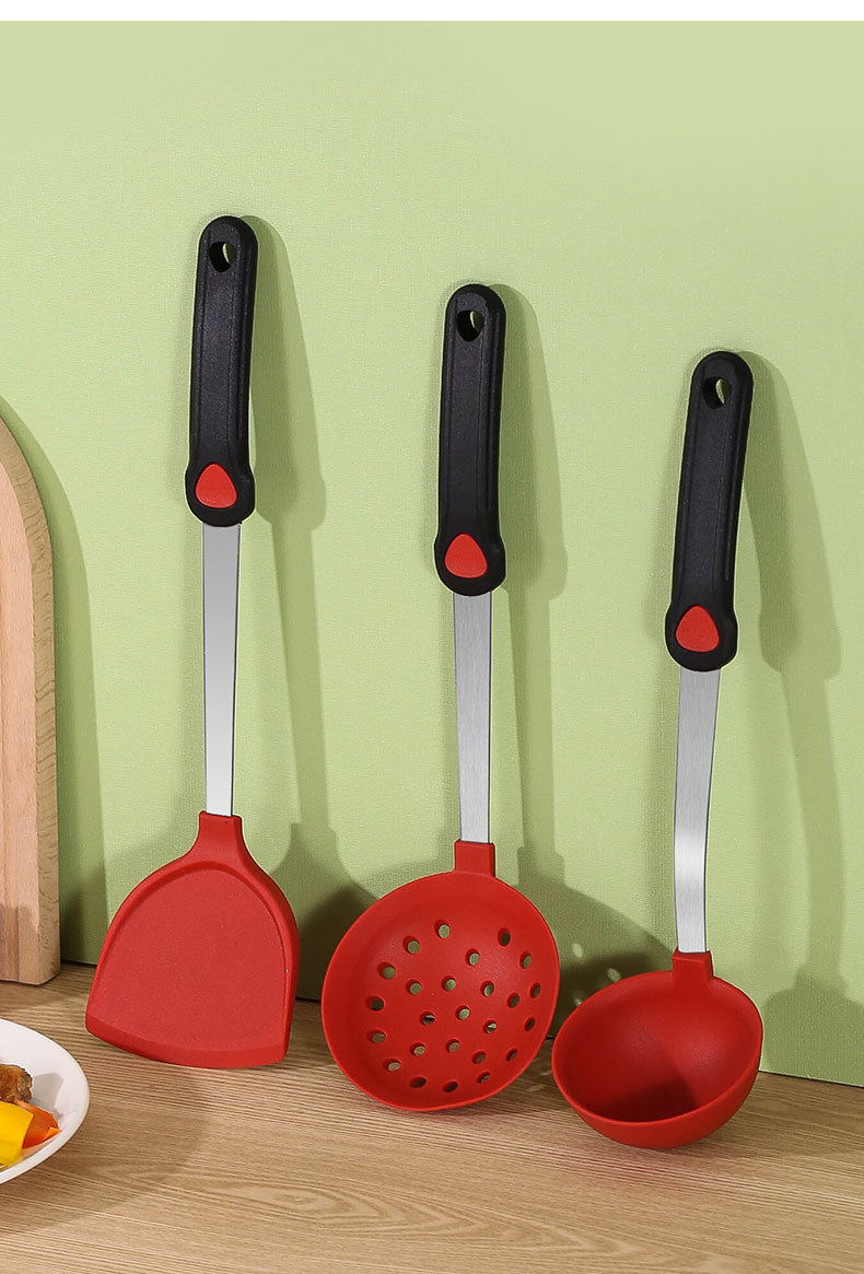 뜨거운 판매 실리콘 레드 도트 주방 용품 세트 스테인레스 스틸 주방 요리 스푼 비 스틱 특수 주걱 스푼