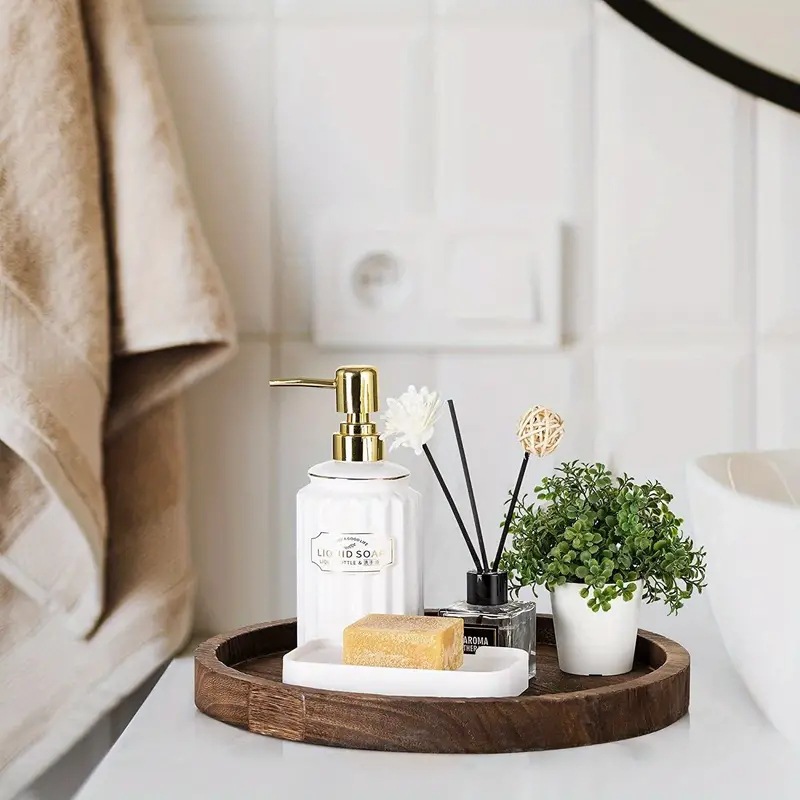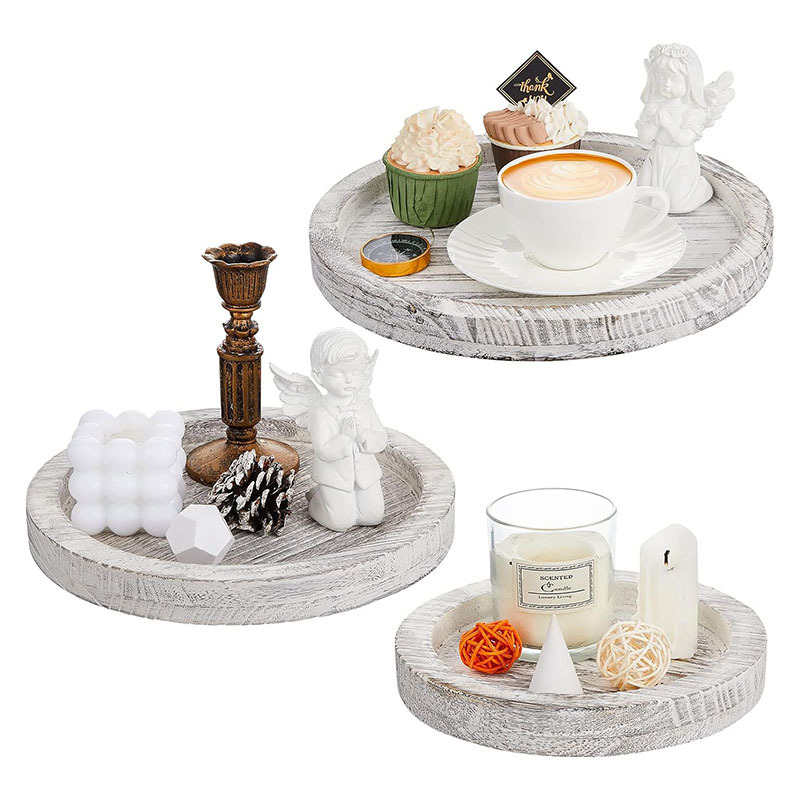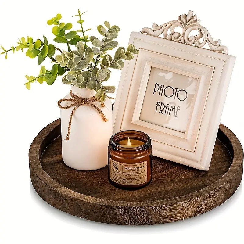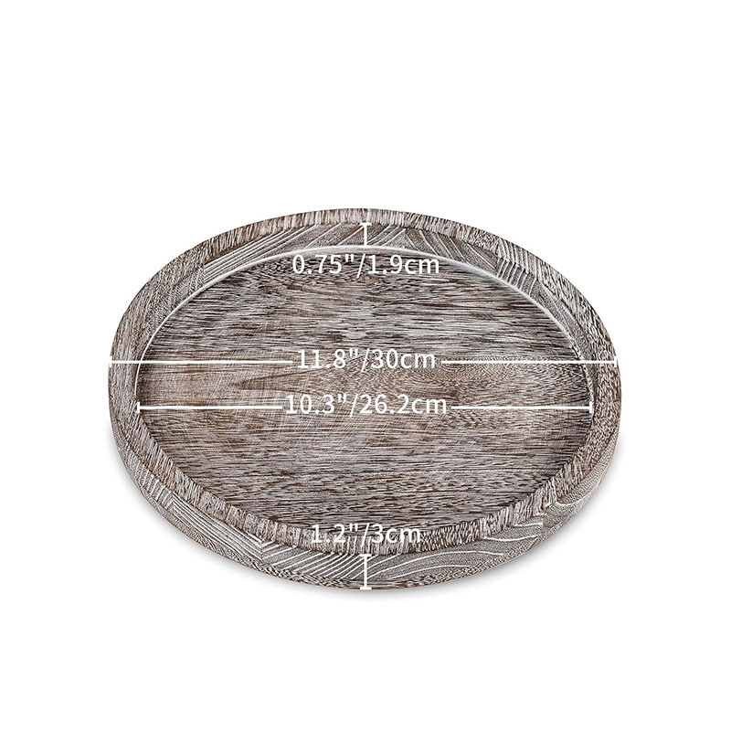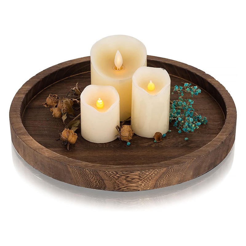 주방 조리대 홈 장식 커피 테이블 트레이 라운드 단단한 나무 빈티지 촛대 농가 발판 트레이