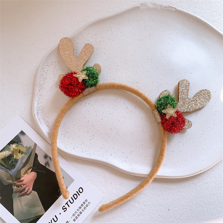 어린이 크리스마스 머리띠 모자 봉제 뿔 머리핀 귀여운 만화 엘크 머리핀 작은 소녀 원피스 머리띠스토어 가기